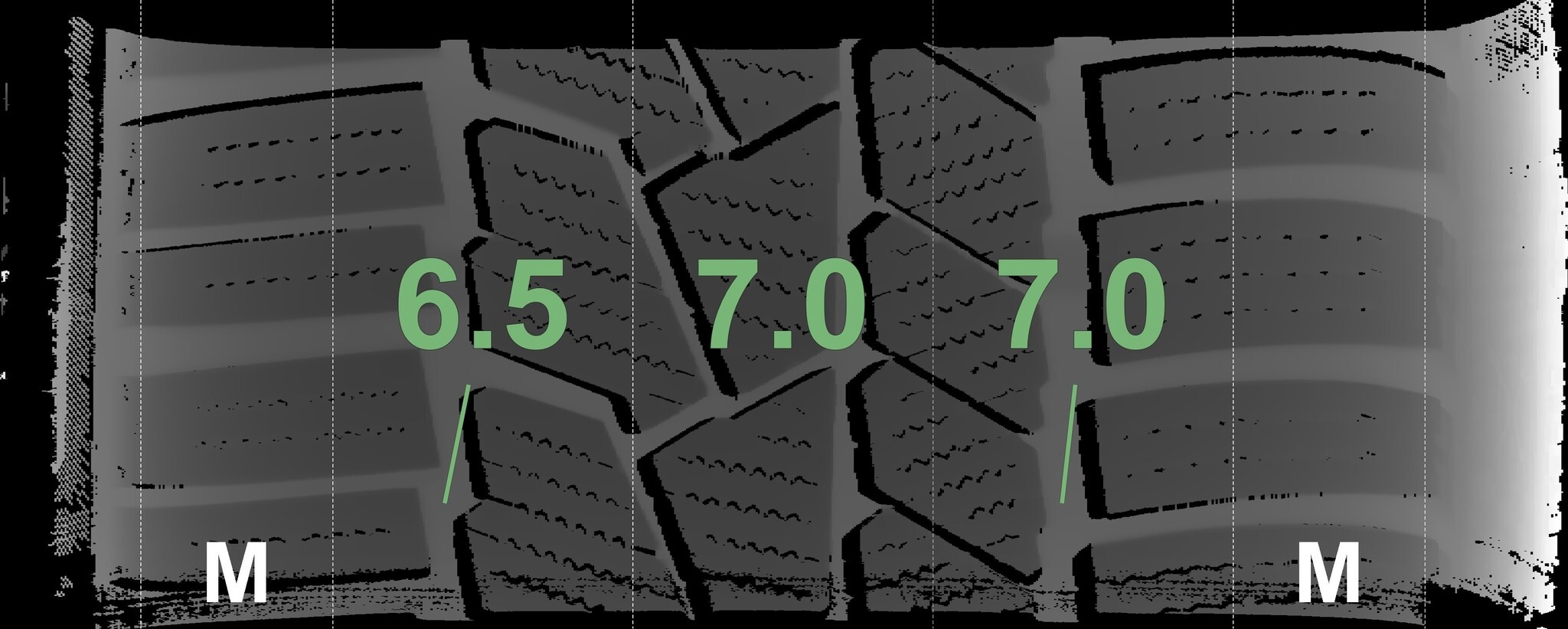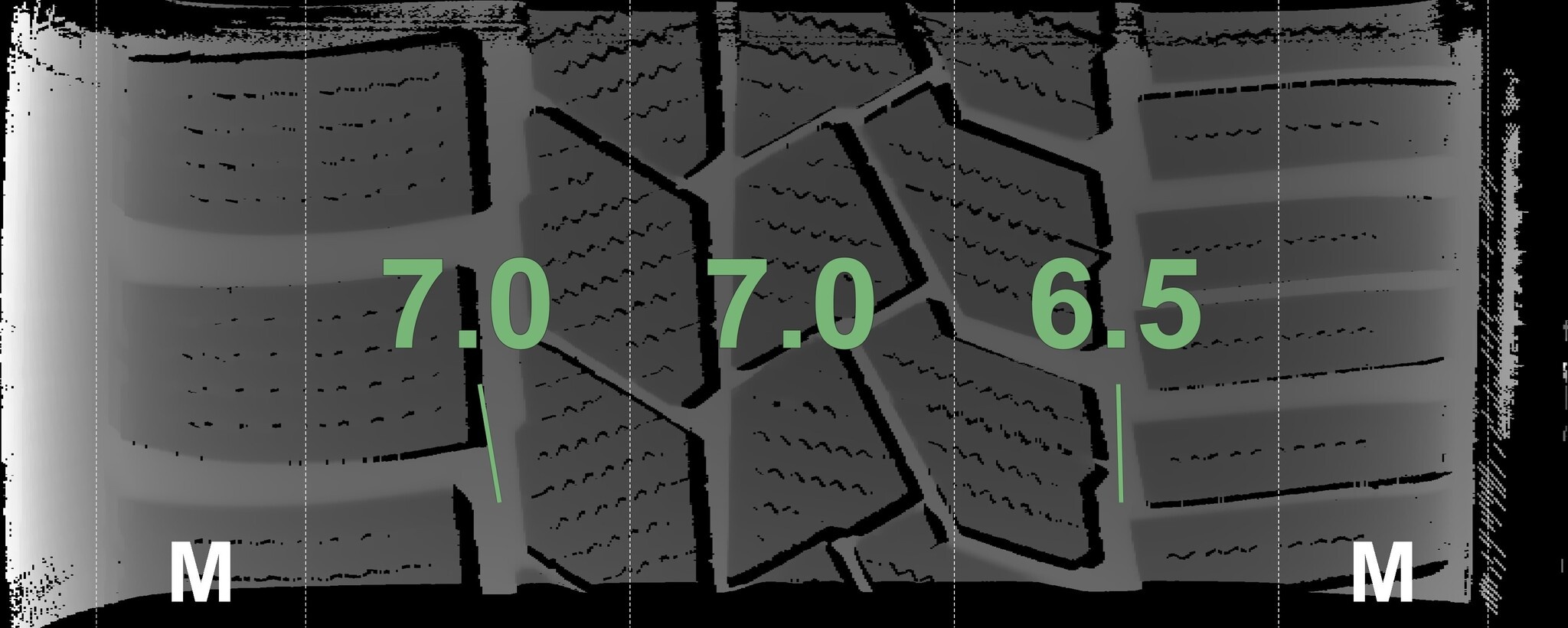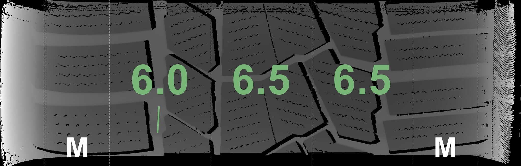 Die gemessenen Profiltiefen und Details zu den Felgen sind oben abgebildet.