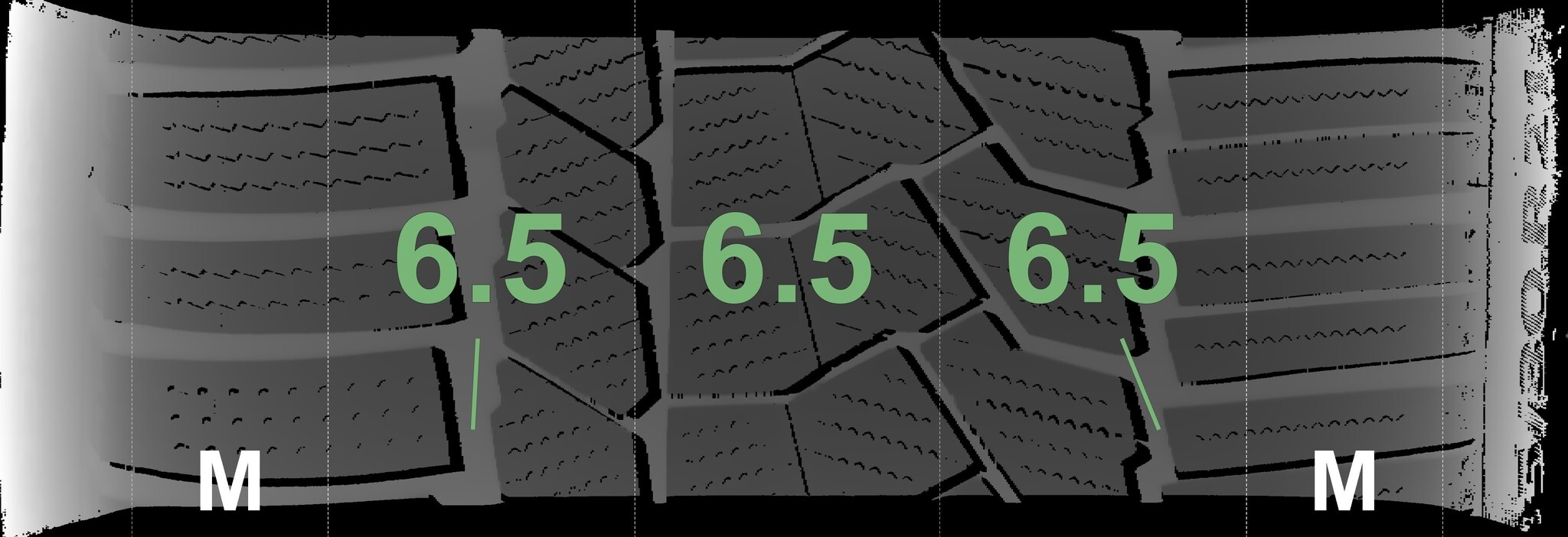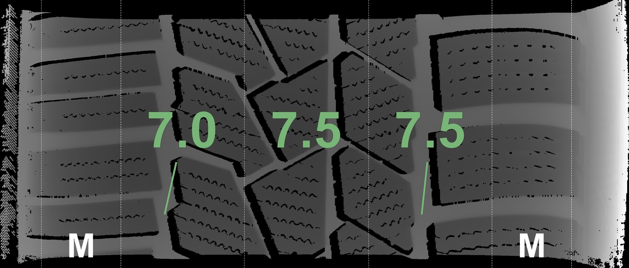 Die gemessenen Profiltiefen und die Details der Felgen sind oben angegeben.