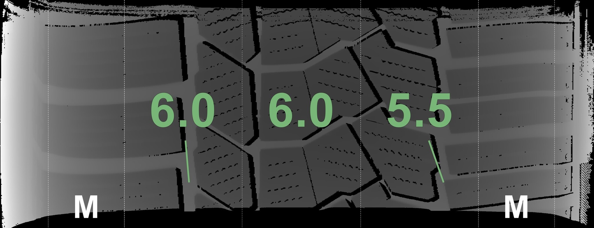 Die gemessenen Profiltiefen und die Details der Felgen sind oben angezeigt.