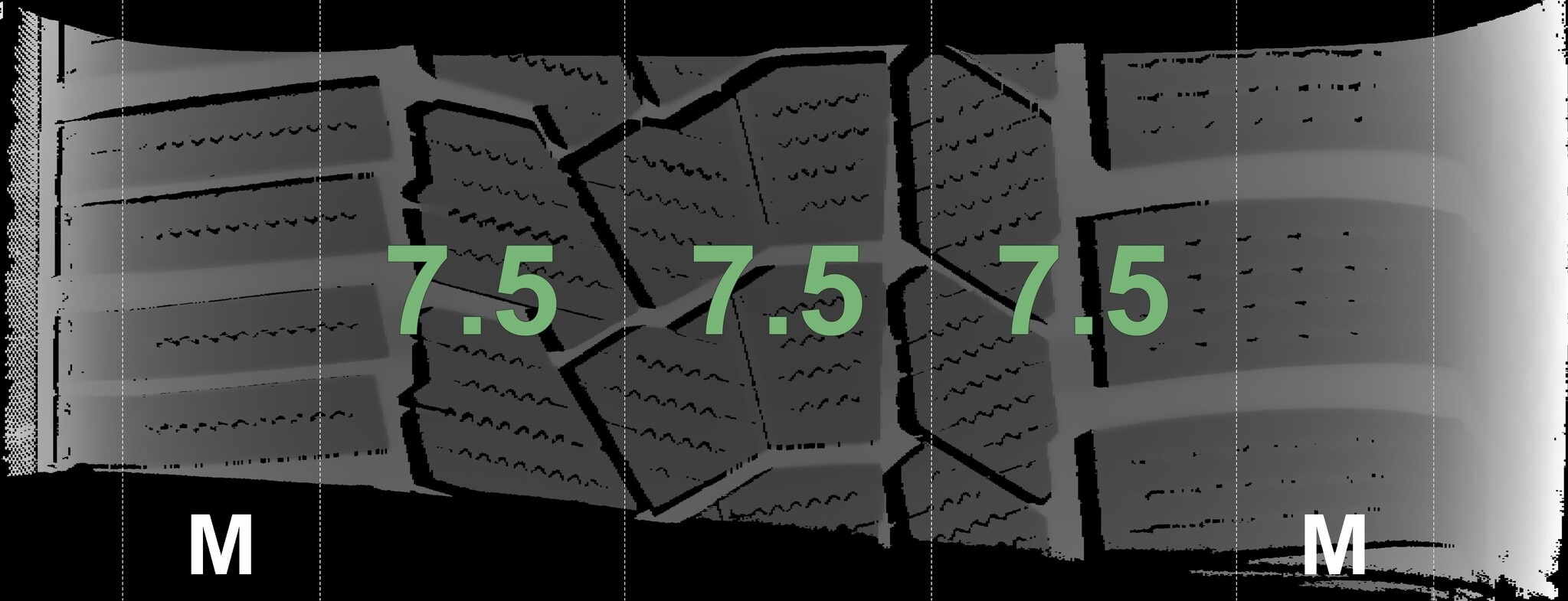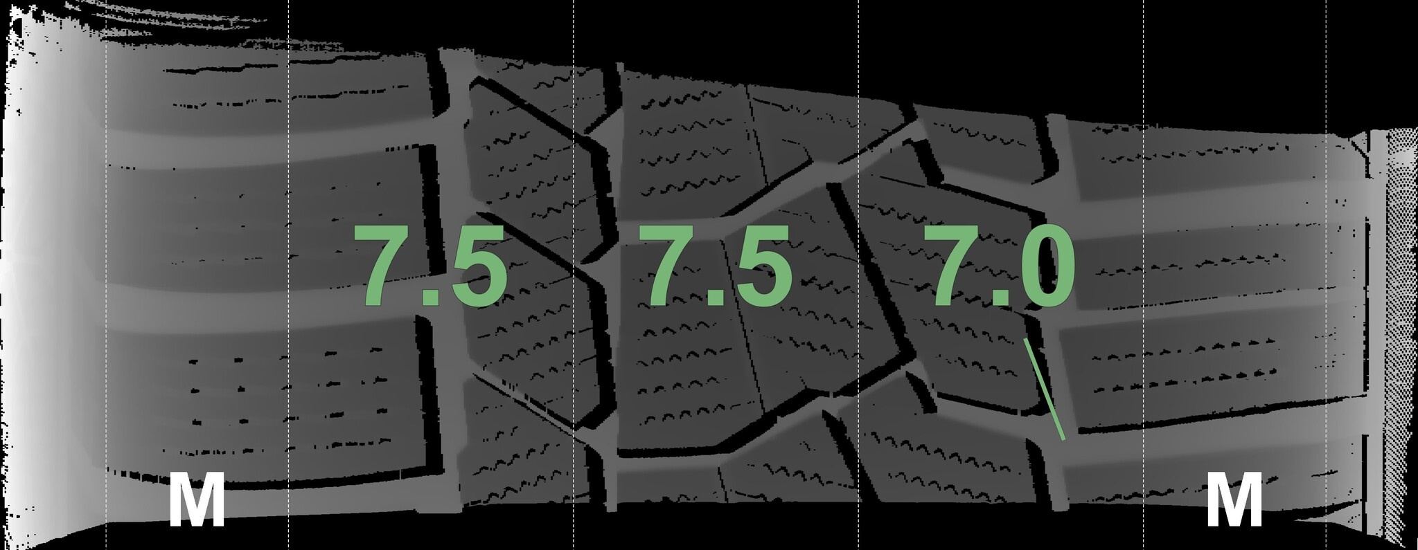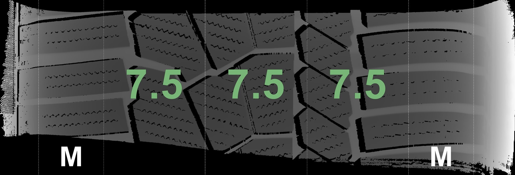 | Zustand | Profiltiefe | DOT | Vorderachse Links | Gebraucht | 7.3 mm | 3620 |
