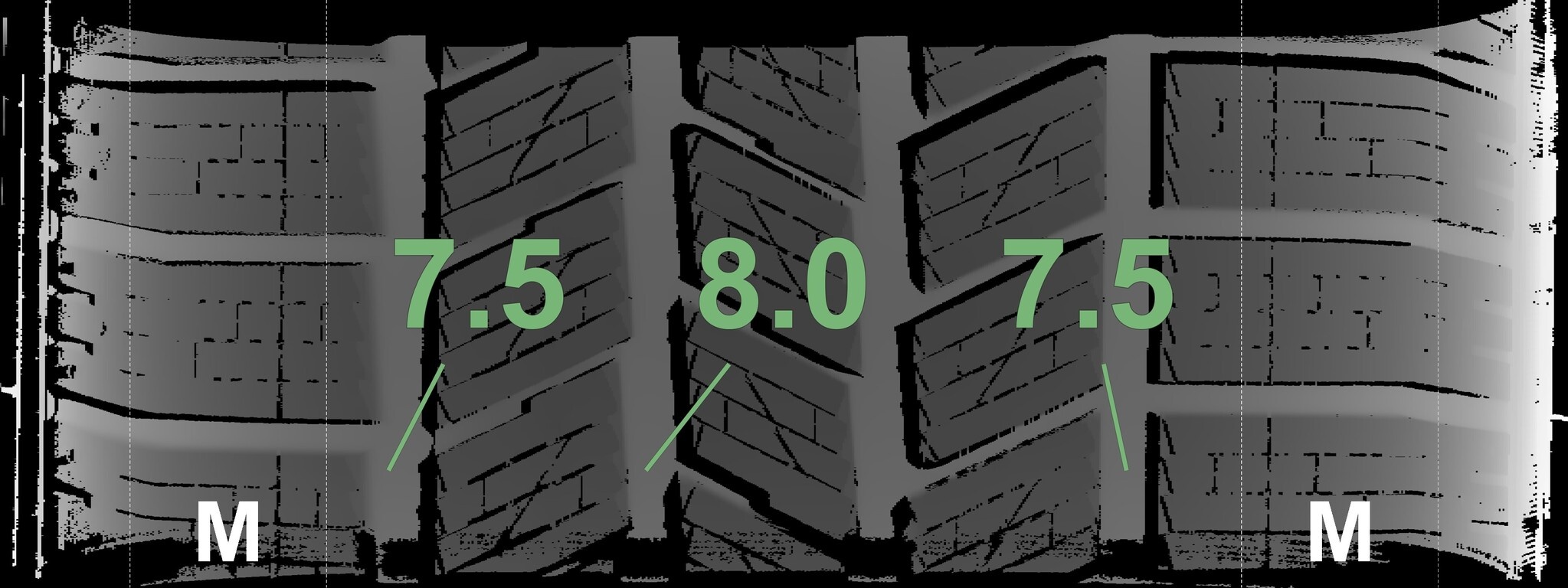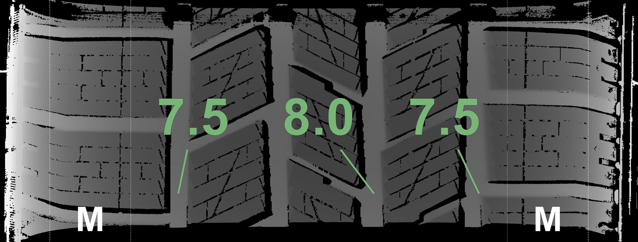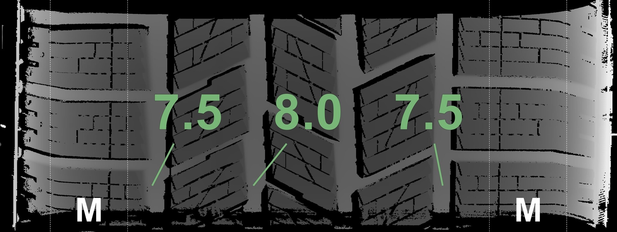 Die gemessenen Profiltiefen und Details zu den Felgen sind oben abgebildet.