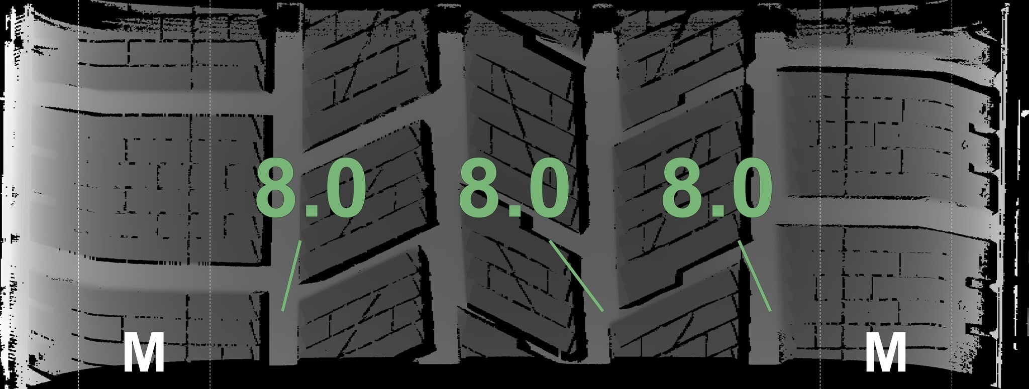 | Zustand | Profiltiefe | DOT | Hinterachse Links | Neu | 8,0 mm | 3720 |