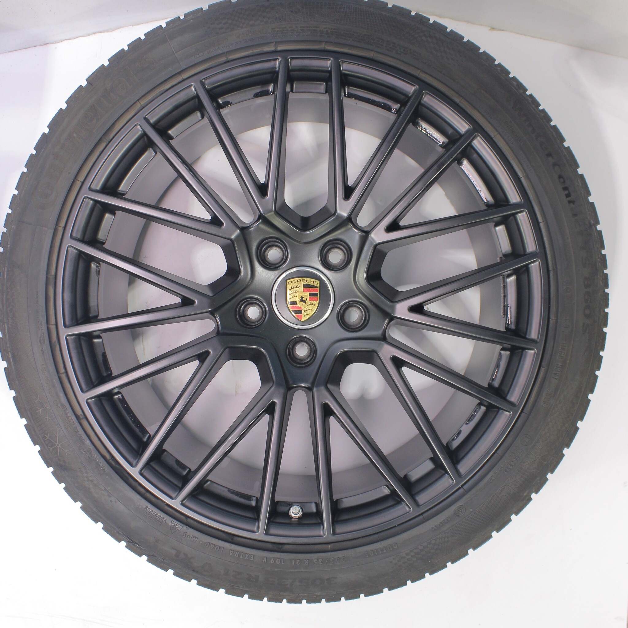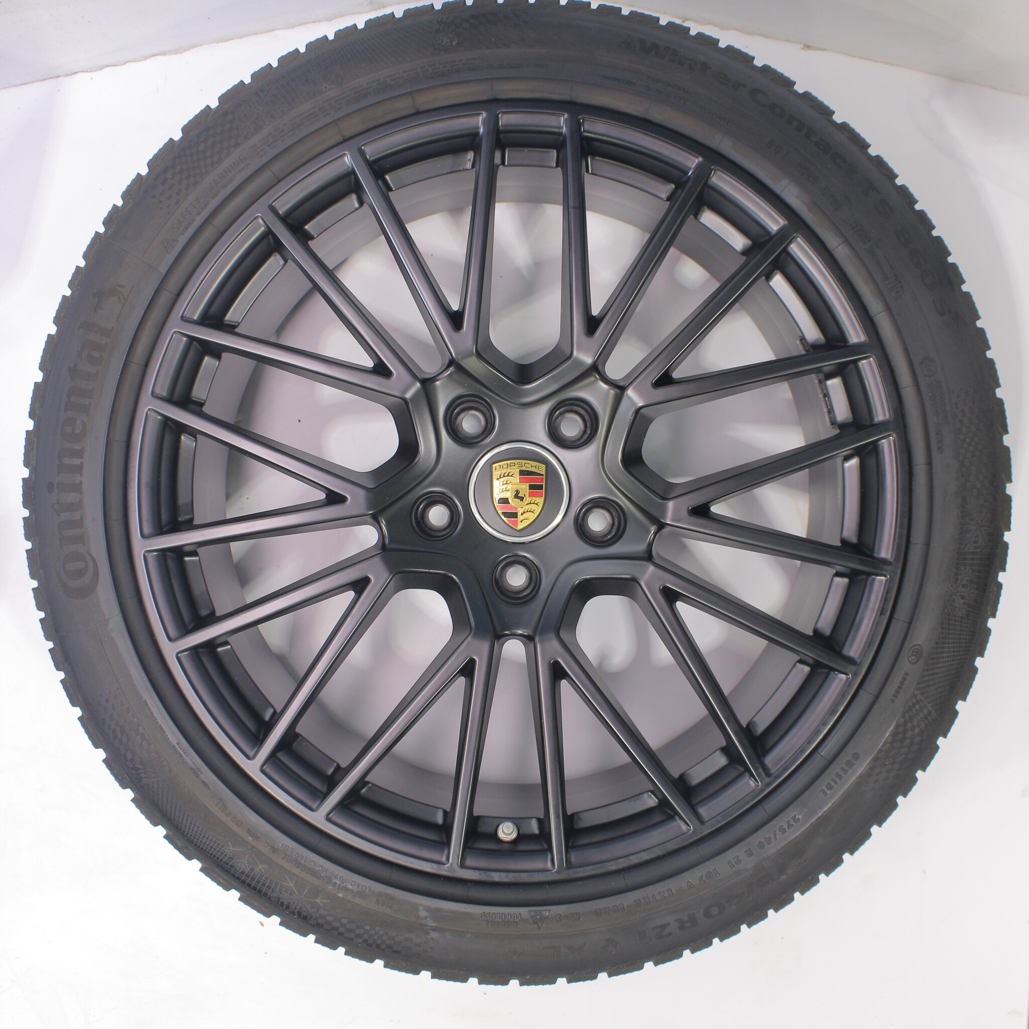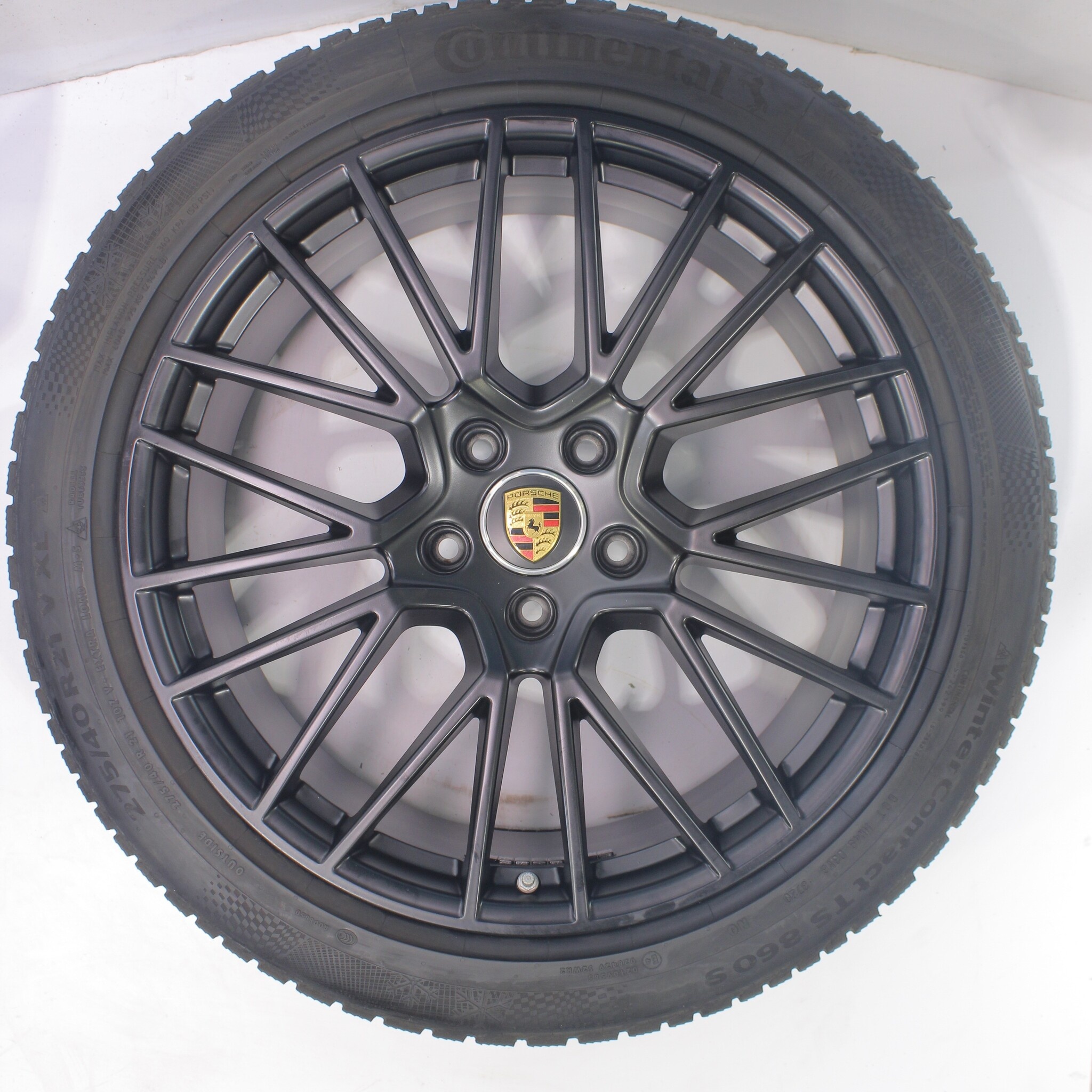 Original Porsche Radsatz, Styling 21-Zoll Felgen mit Continental WINTER CONTACT TS860 Winterkompletträdern. Diese Felgen sind Original Felgen der Marke Porsche und geeignet für: Porsche Cayenne E3.