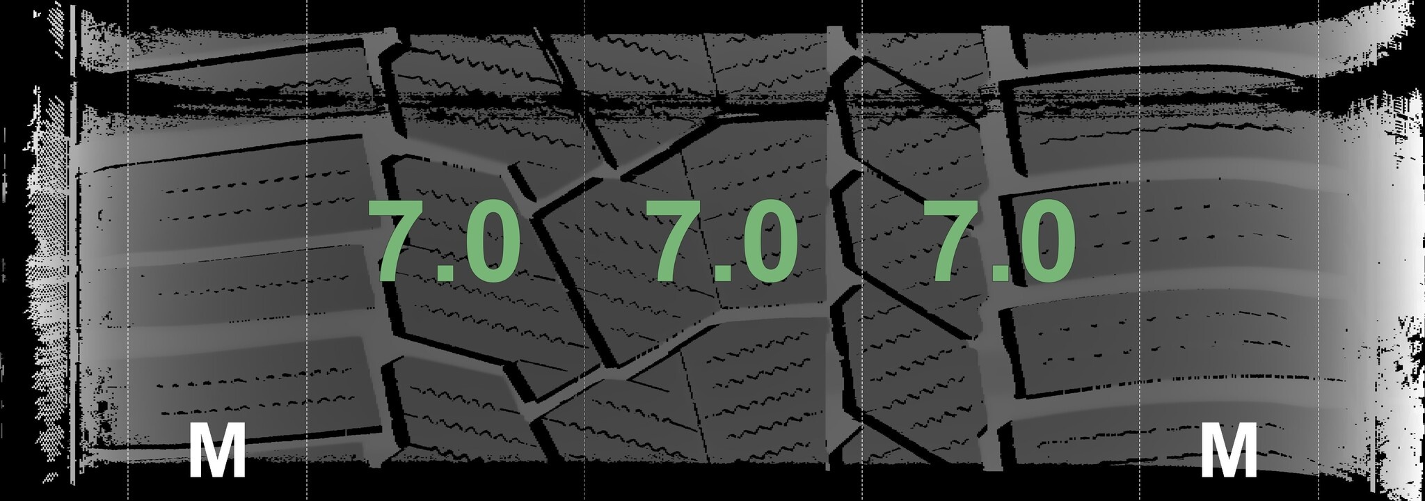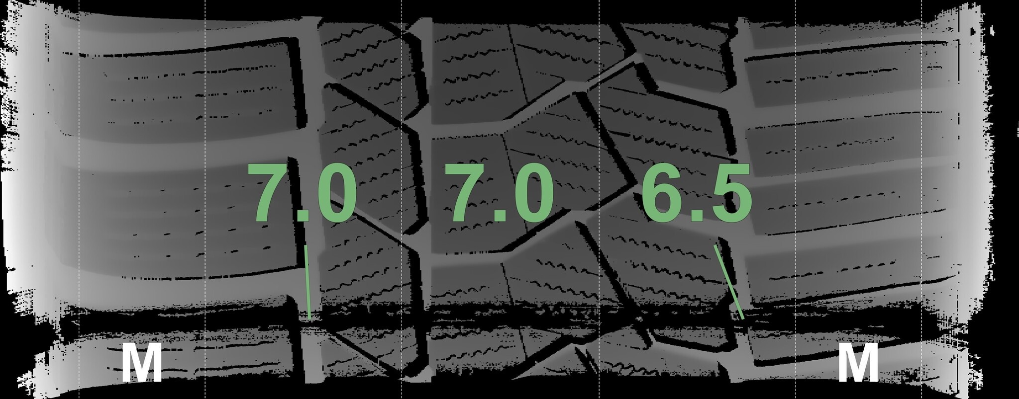 Die gemessenen Profiltiefen und Details zu den Felgen sind oben abgebildet.