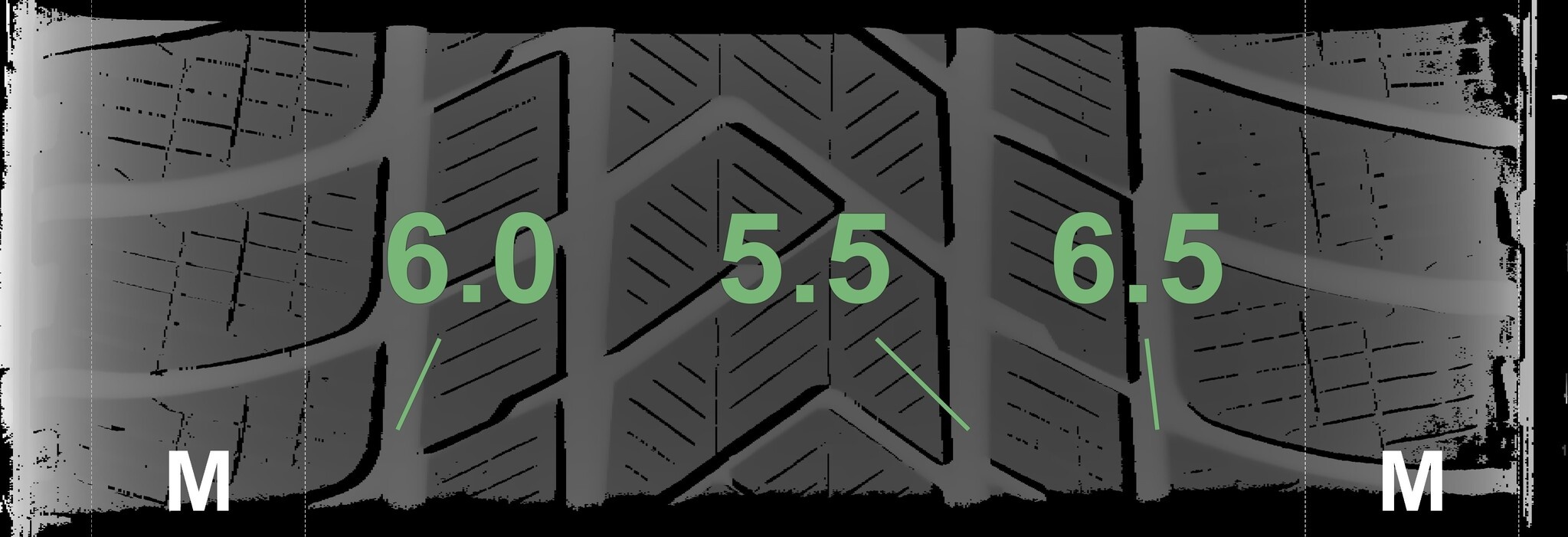Die gemessenen Profiltiefen und Details zu den Felgen sind oben abgebildet.