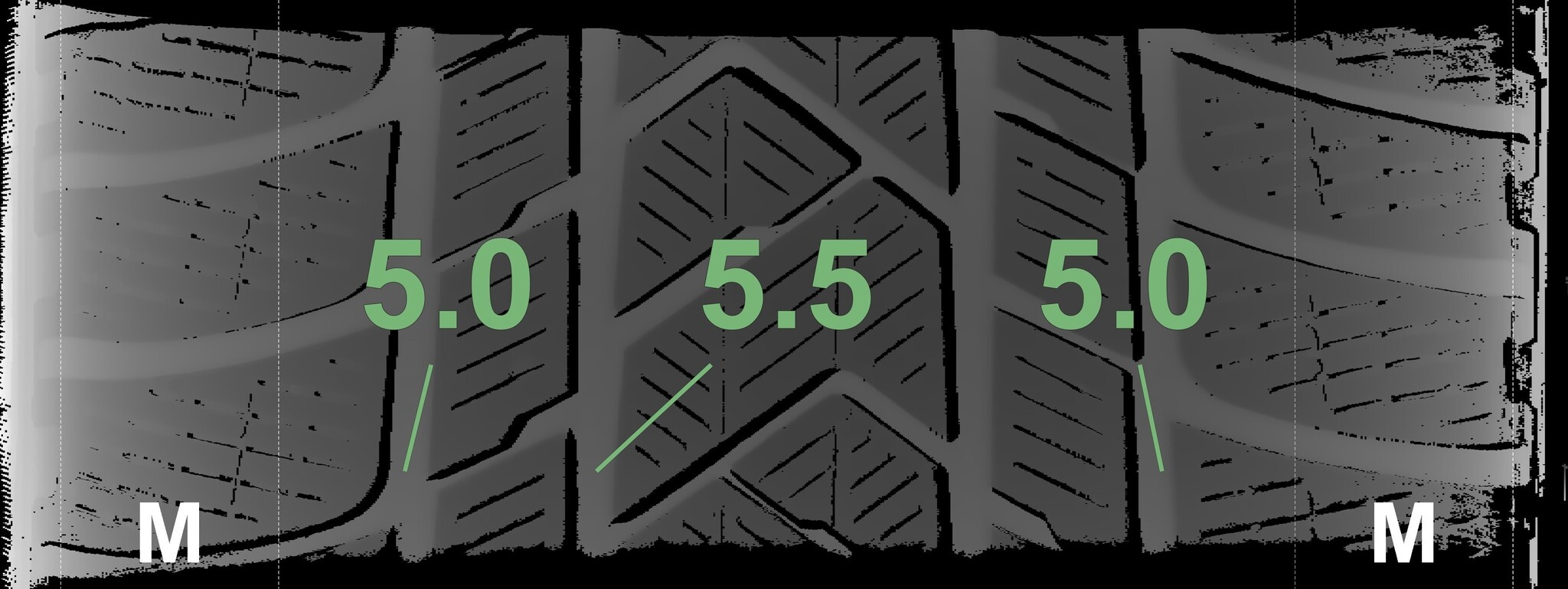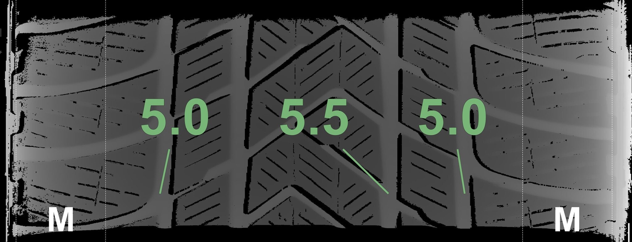 Die gemessenen Profiltiefen und Details zu den Felgen sind oben abgebildet.