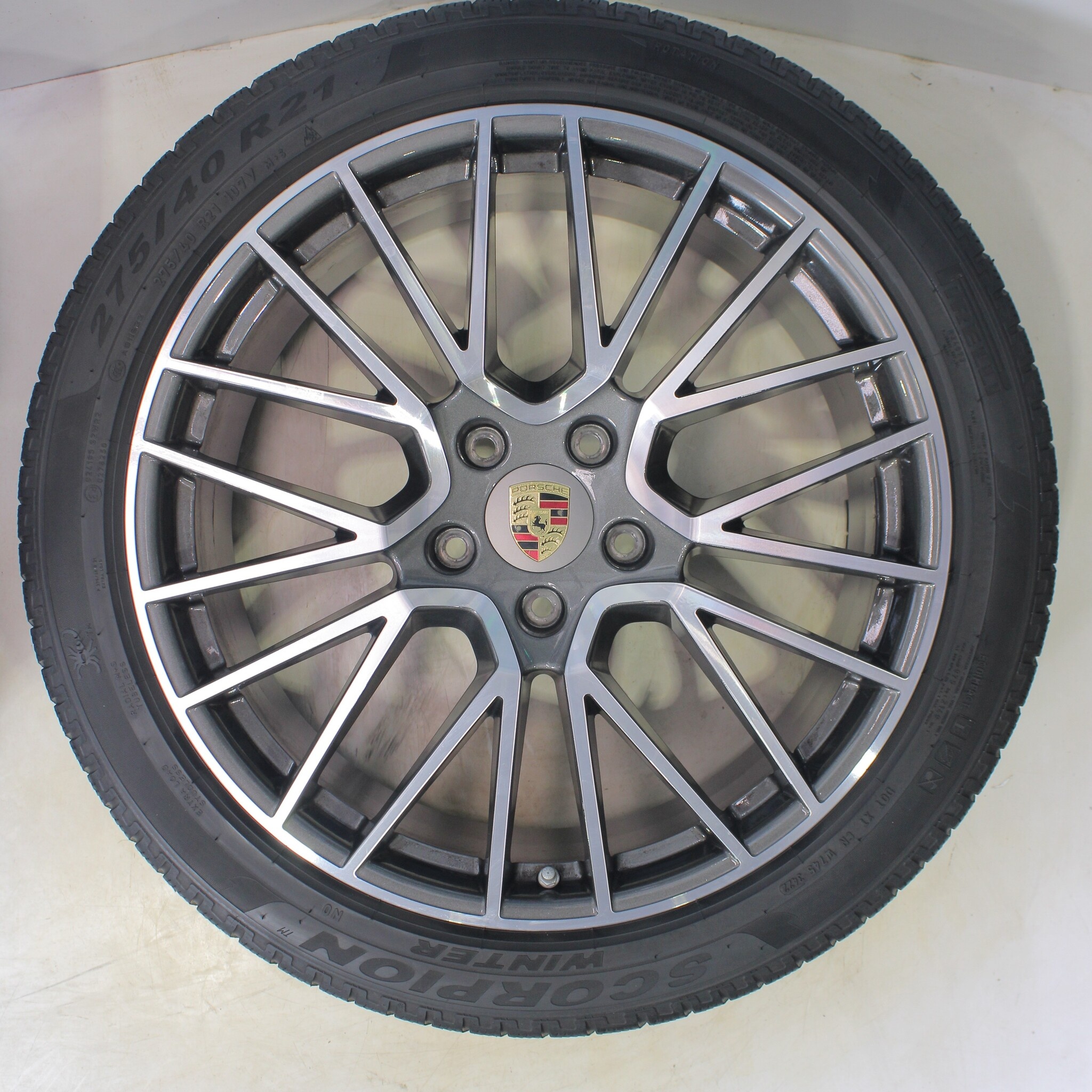 Original Porsche Radsatz, Styling 21-Zoll Felgen mit Pirelli Scorpion Winterkompletträdern. Diese Felgen sind Original Felgen der Marke Porsche und geeignet für: Porsche Cayenne E3.