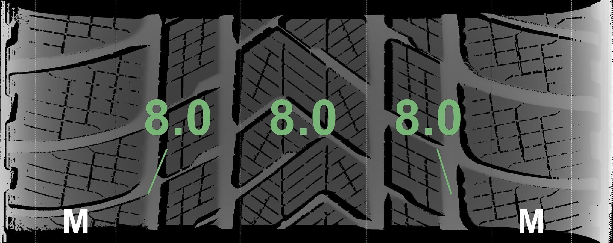 | Zustand | Profiltiefe | DOT | Vorderachse Links | Neu | 8,0 mm | 3425 |