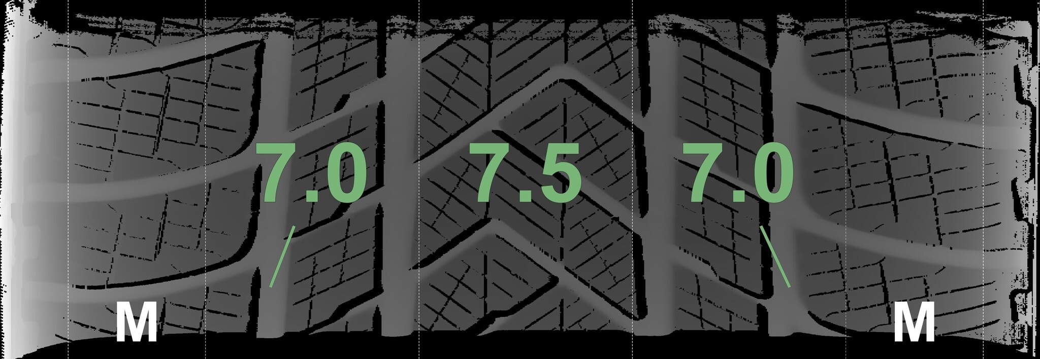 Die gemessenen Profiltiefen und die Details der Felgen sind oben angezeigt.