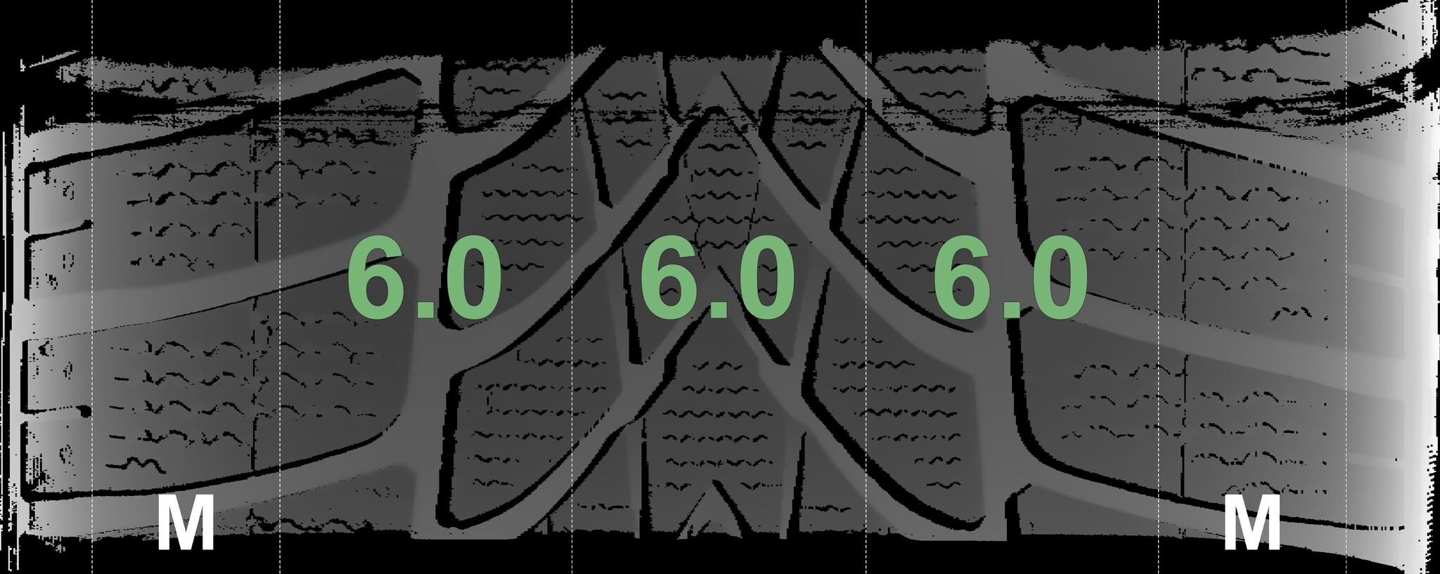Zustand | Profiltiefe | DOT | Hinterachse Links | Gebraucht | 6,0 mm | 2019 |