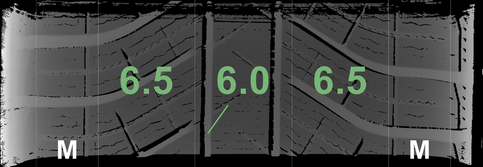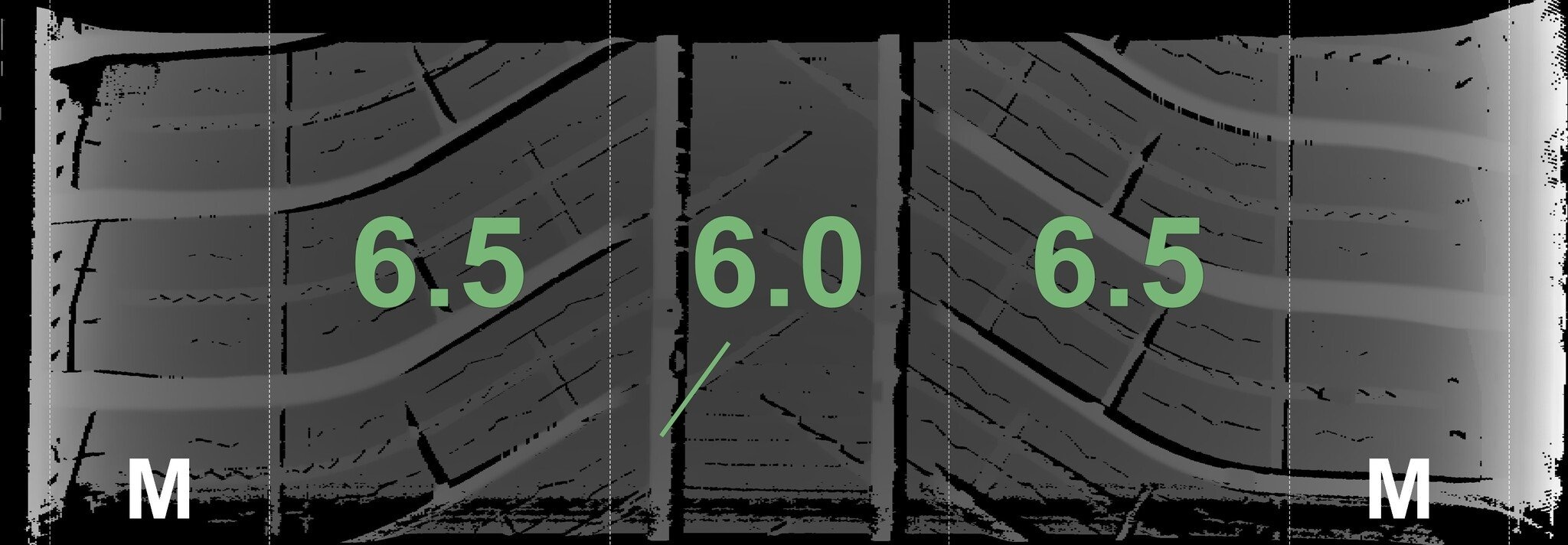 | Zustand | Profiltiefe | DOT | Hinterachse Rechts | Gebraucht | 6,3 mm | 3419 |