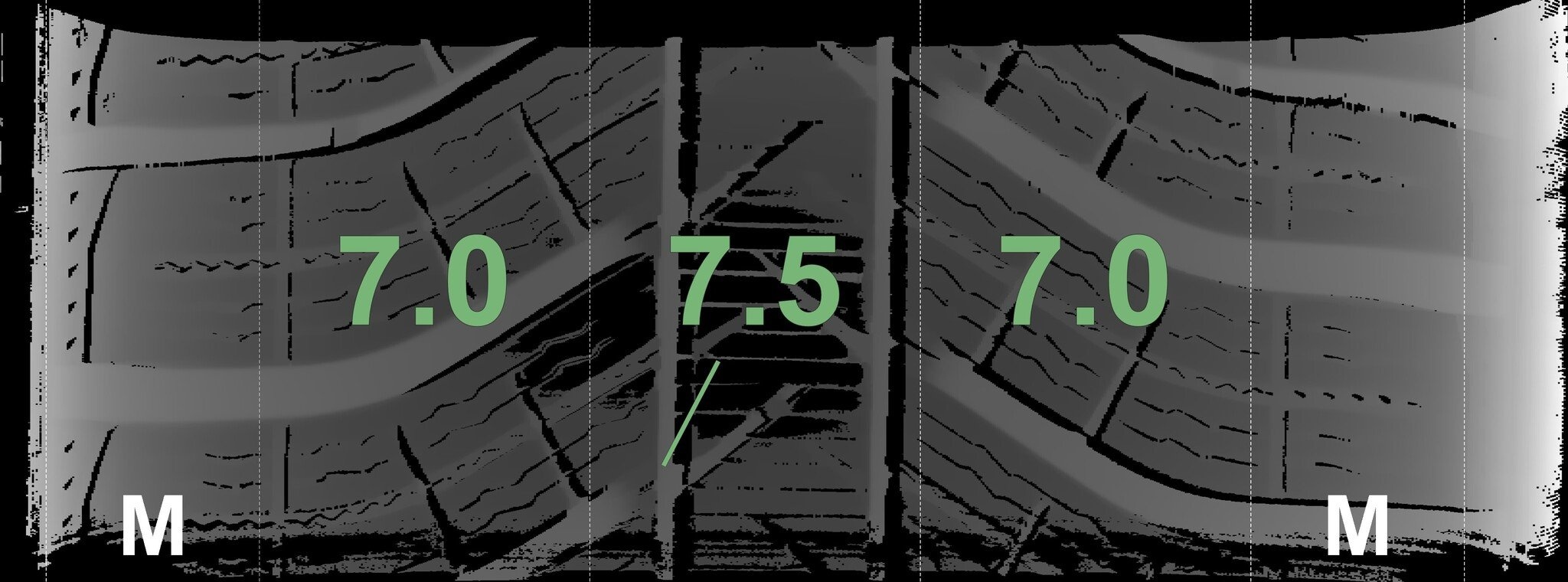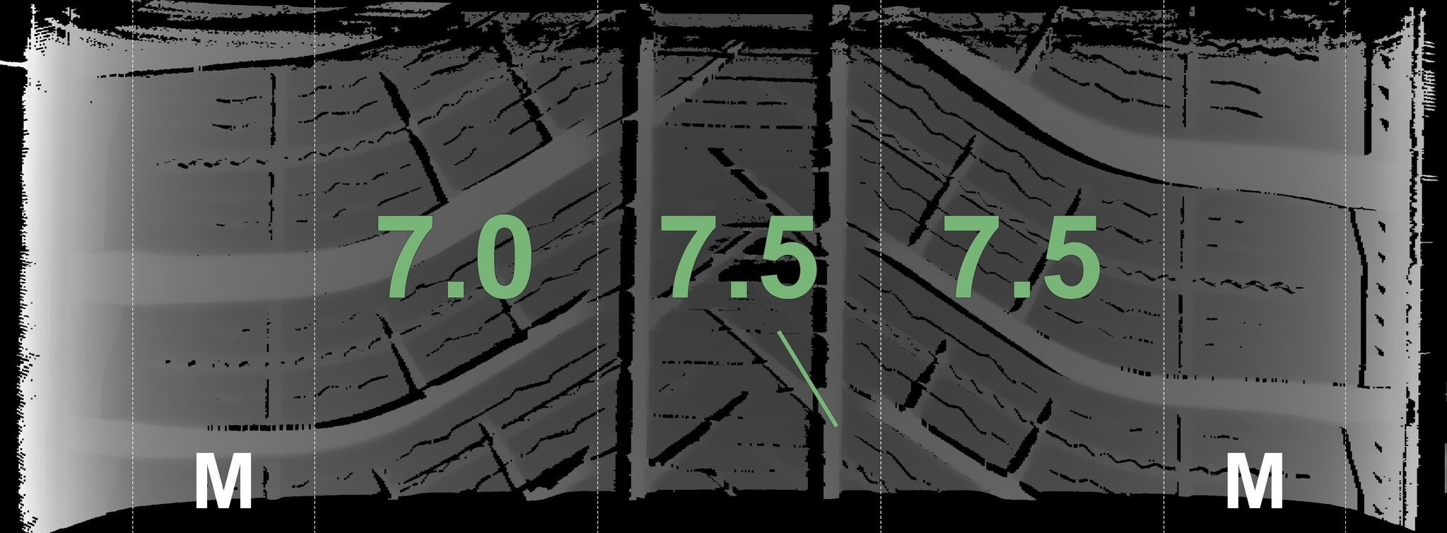 | Zustand | Profiltiefe | DOT | Vorderachse Links | Gebraucht | 7,3 mm | 3719 |