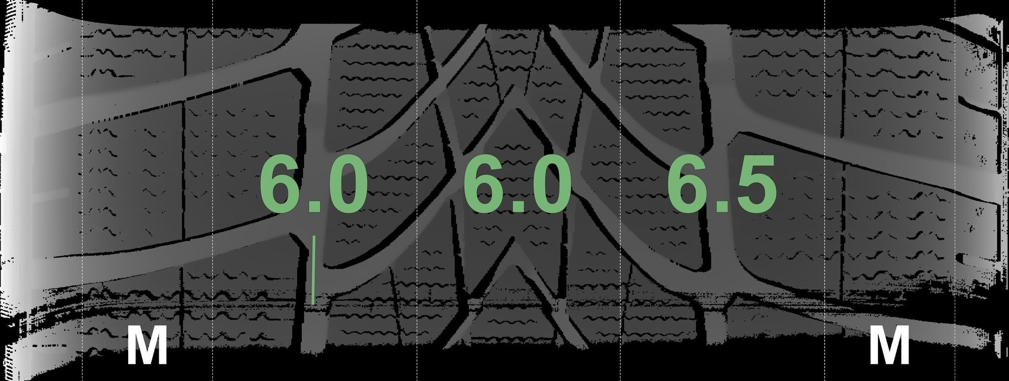 Die gemessenen Profiltiefen und Details zu den Felgen sind oben abgebildet.