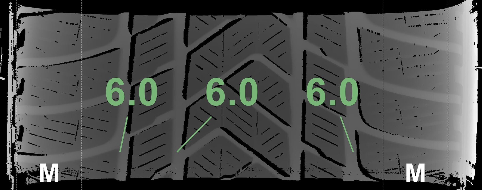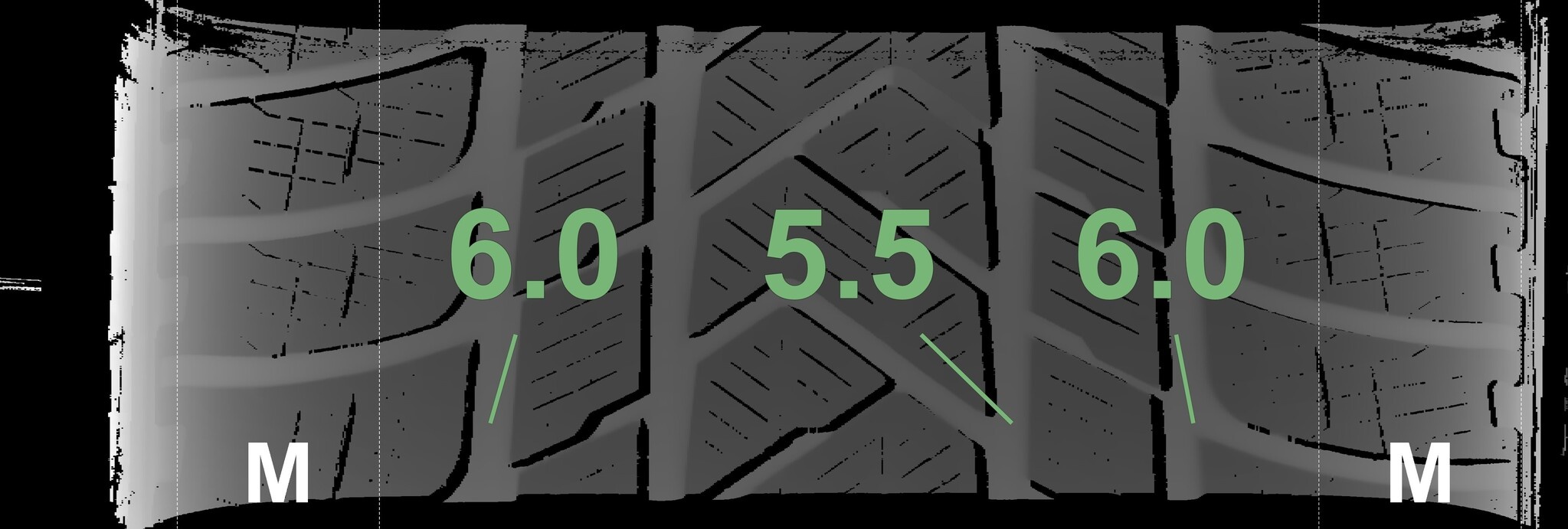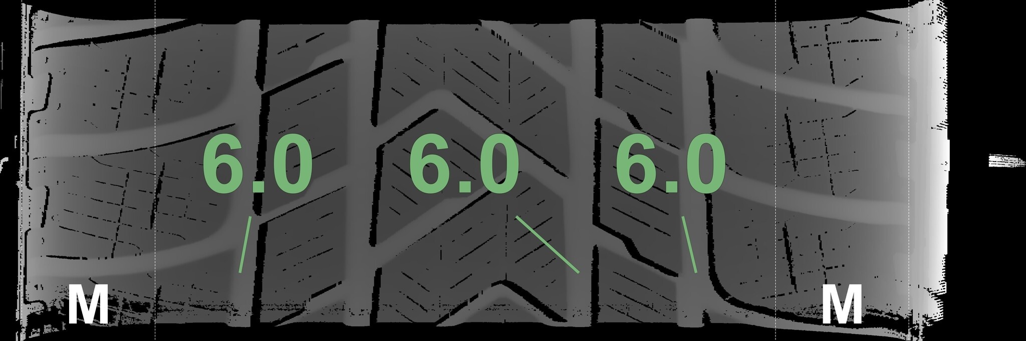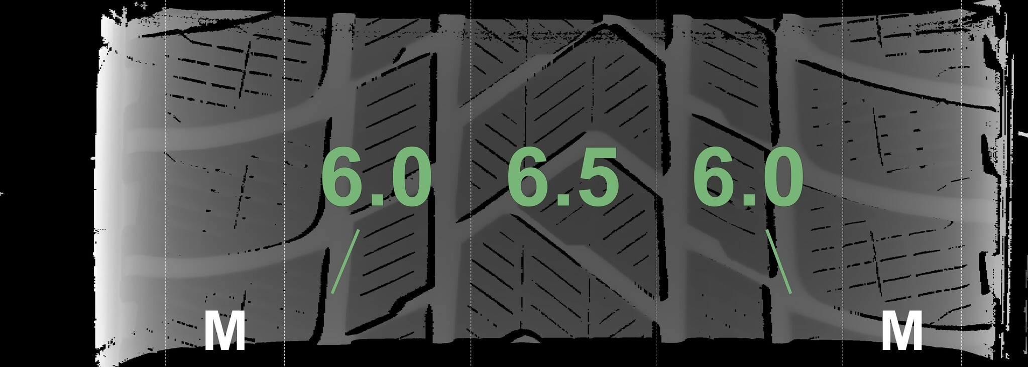 | Zustand | Profiltiefe | DOT | Vorderachse Links | Gebraucht | 6,0 mm | 3721 |