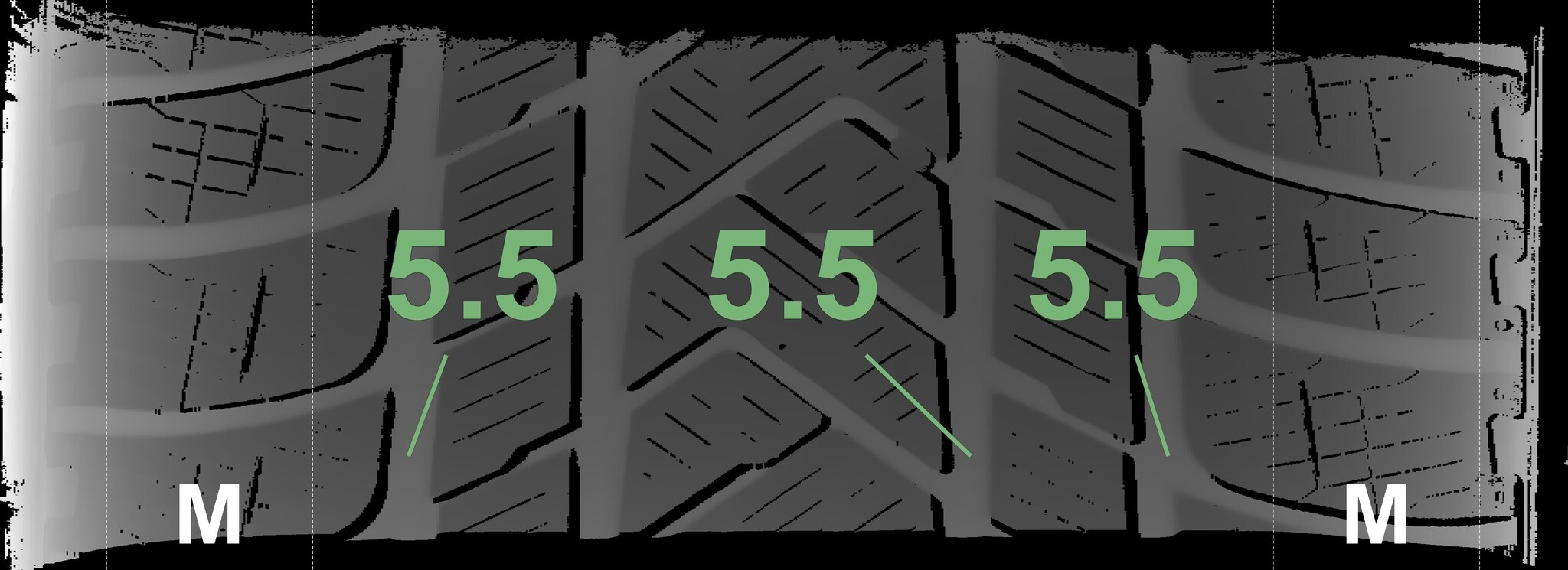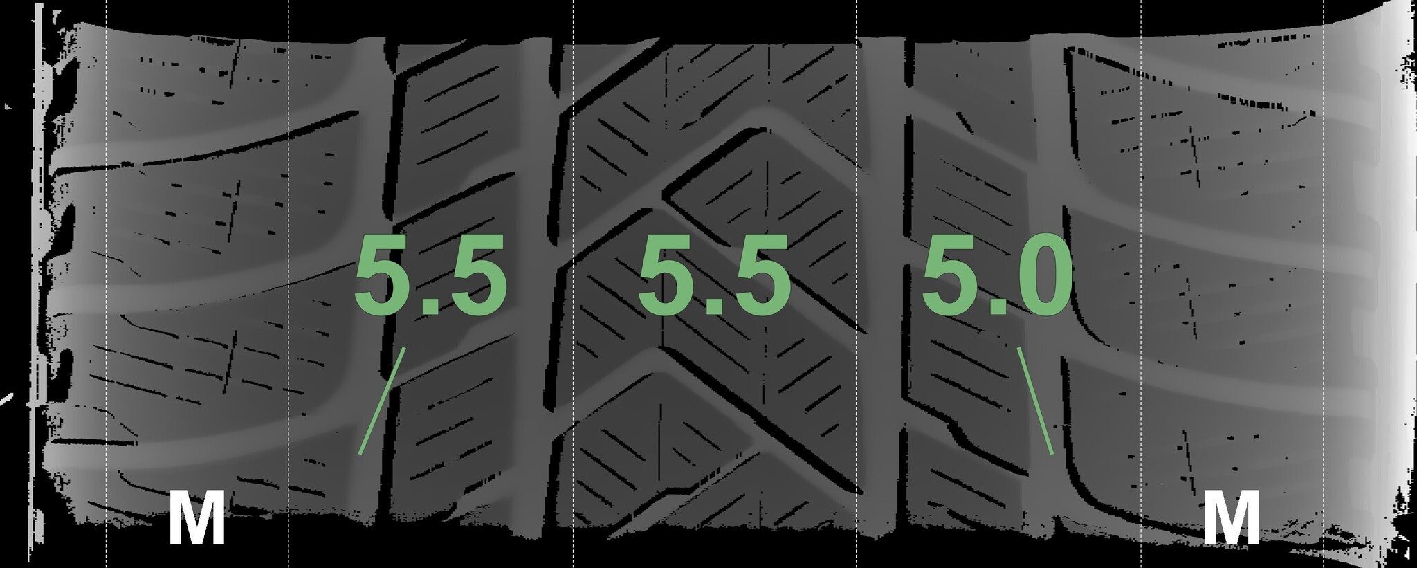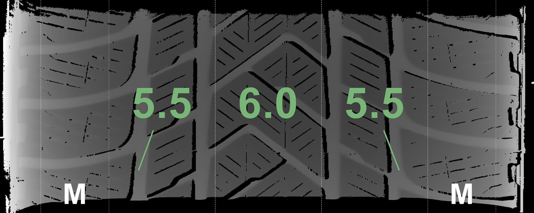 Die gemessenen Profiltiefen und die Details der Felgen sind oben angegeben.