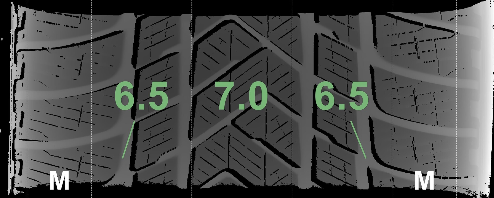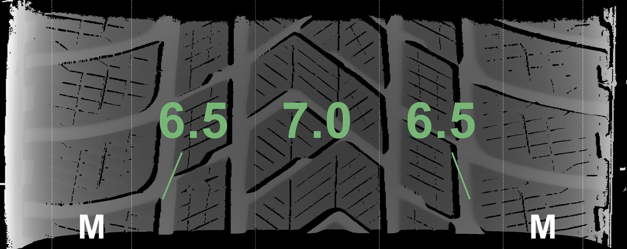 Die gemessenen Profiltiefen und die Details der Felgen sind oben aufgeführt.