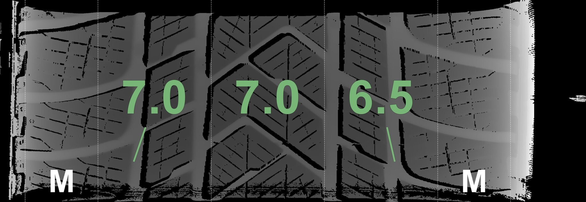 Die gemessenen Profiltiefen und Details zu den Felgen sind oben abgebildet.