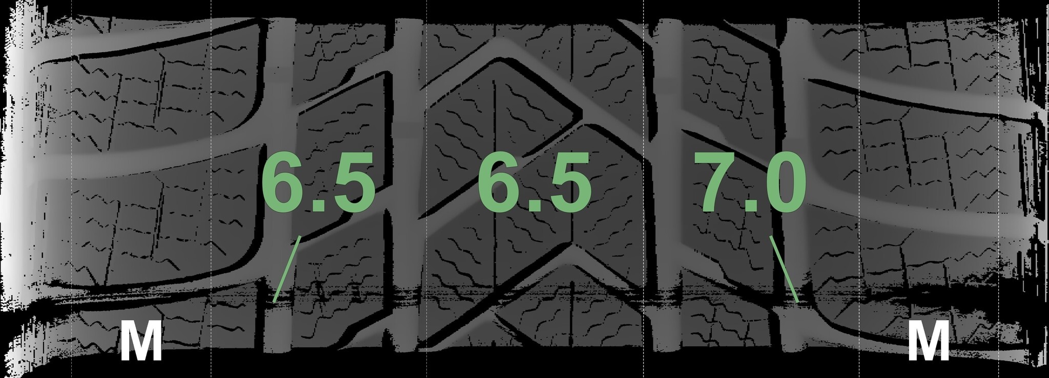 Die gemessenen Profiltiefen und Details zu den Felgen sind oben abgebildet.