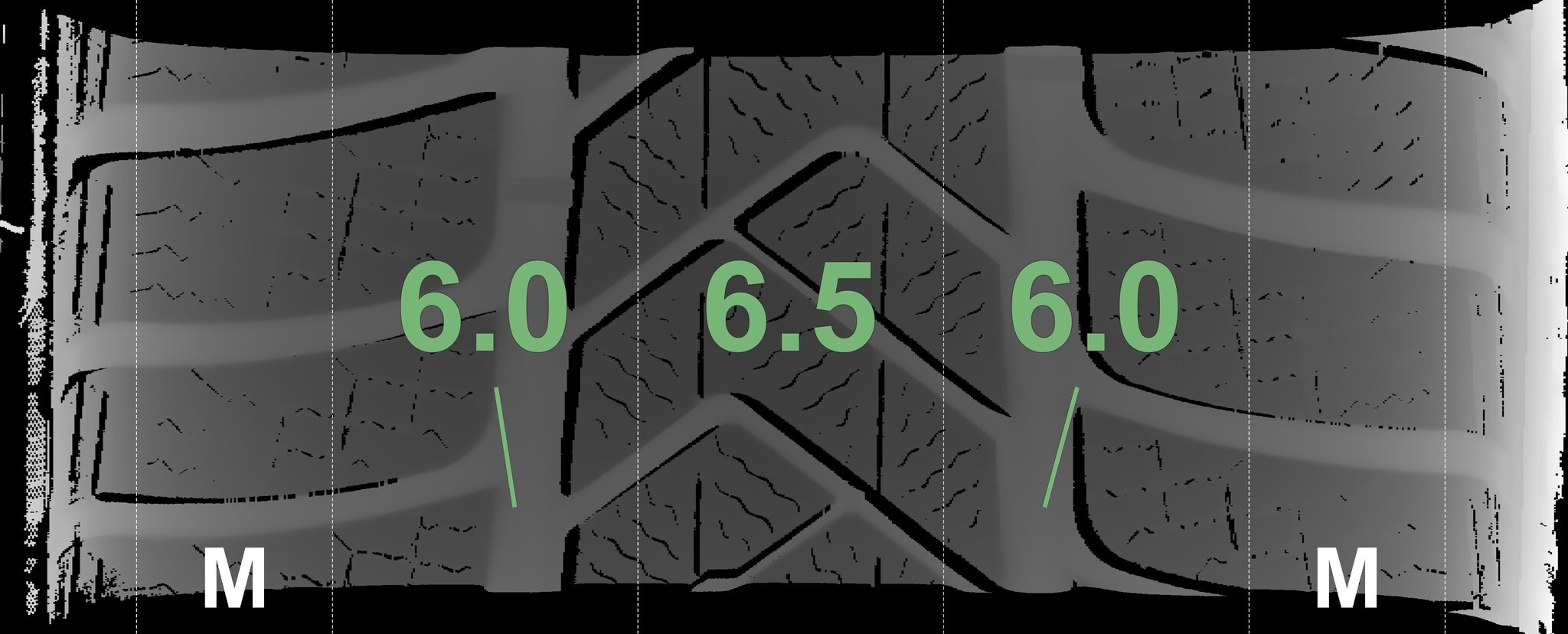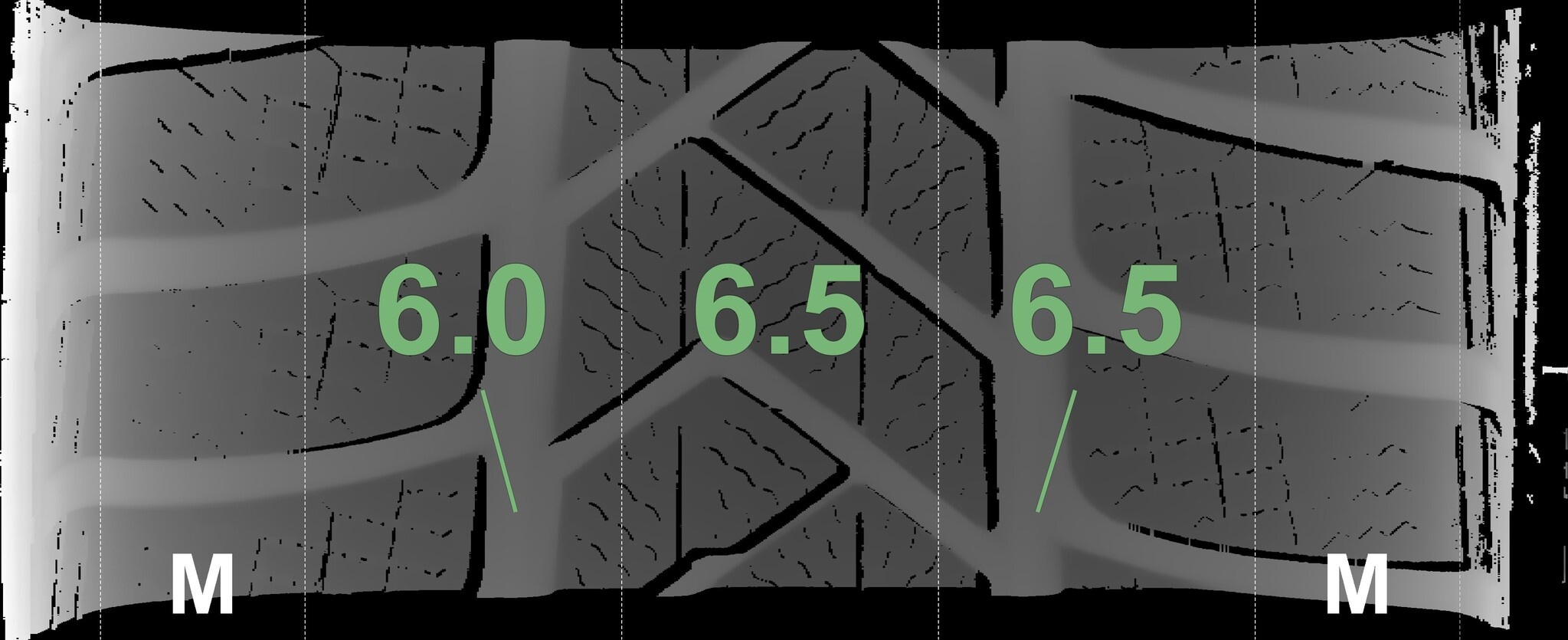 Die gemessenen Profiltiefen und Details zu den Felgen sind oben abgebildet.