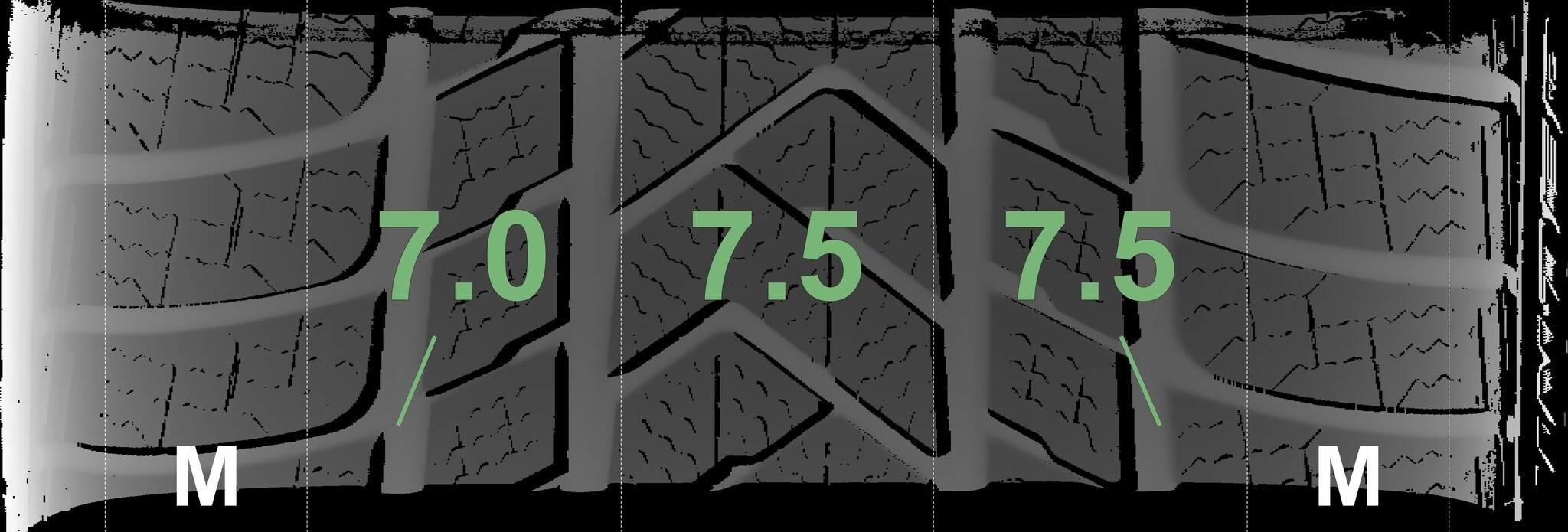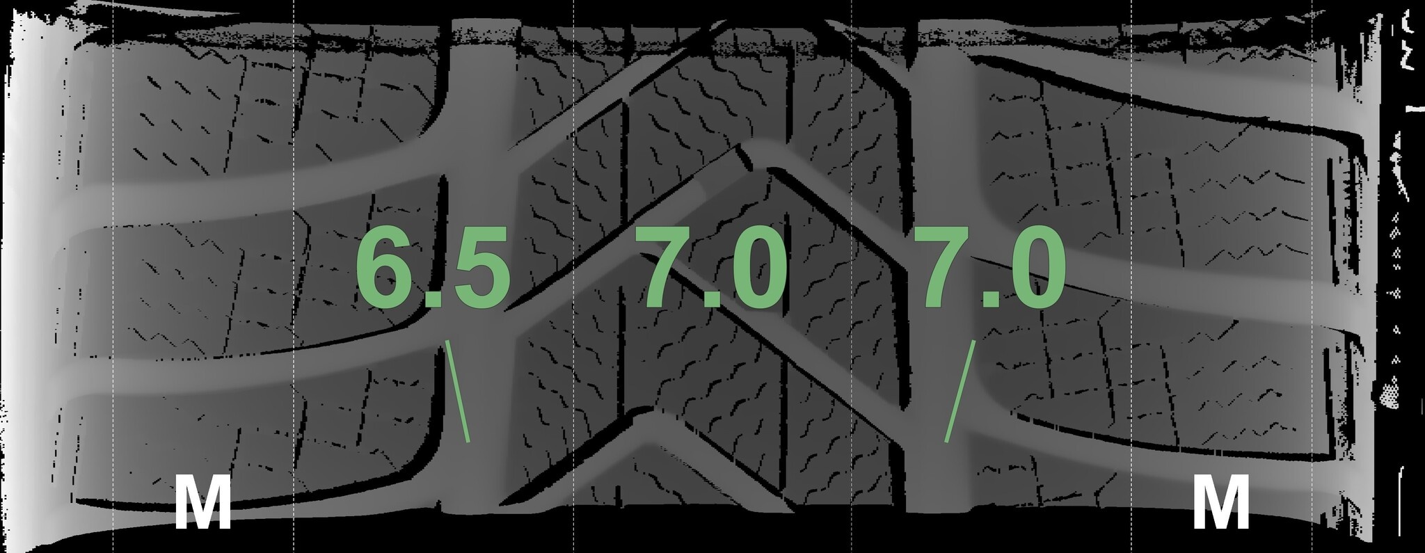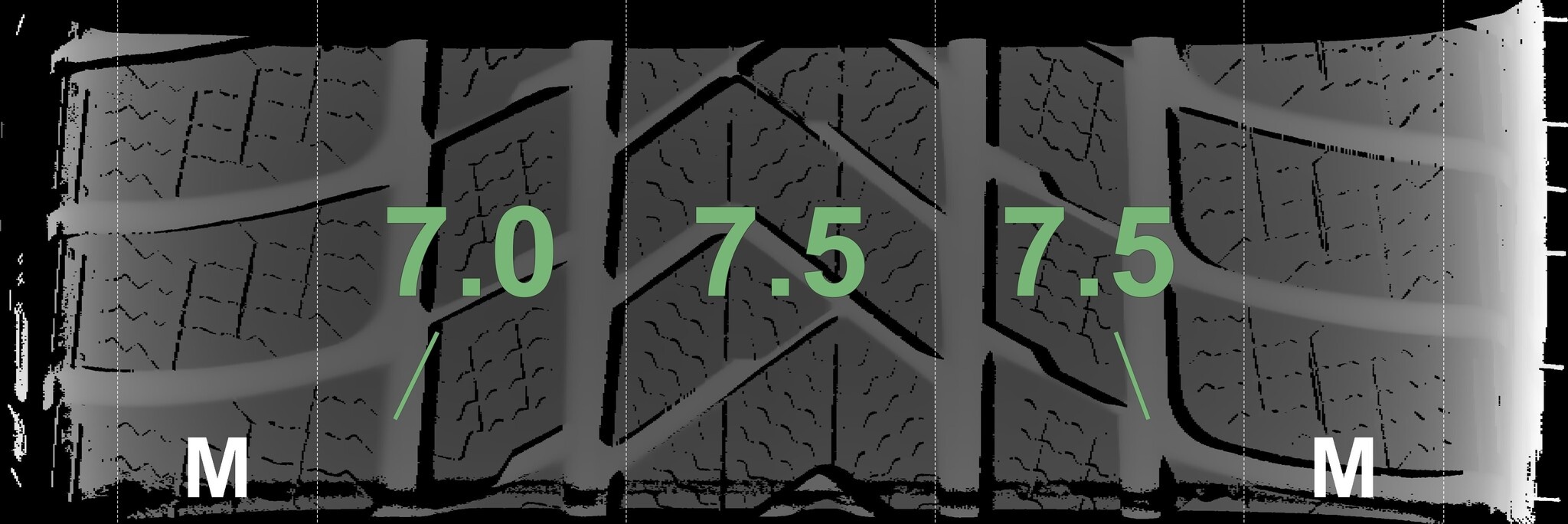 Die gemessenen Profiltiefen und Details zu den Felgen sind oben abgebildet.