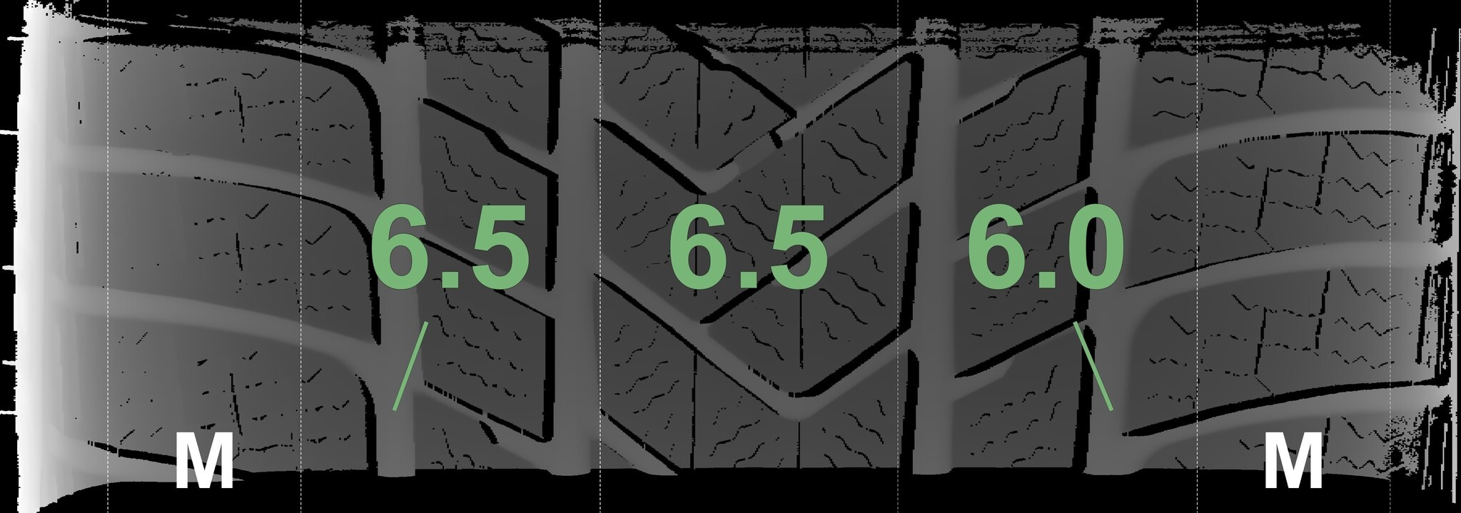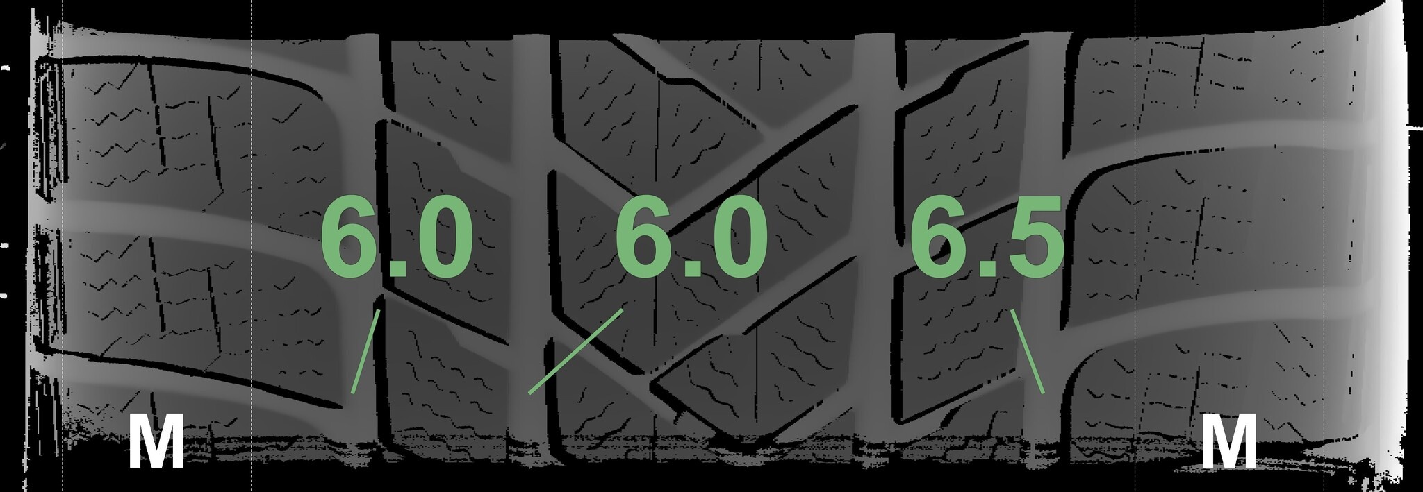 Die gemessenen Profiltiefen und die Details der Felgen sind oben dargestellt.