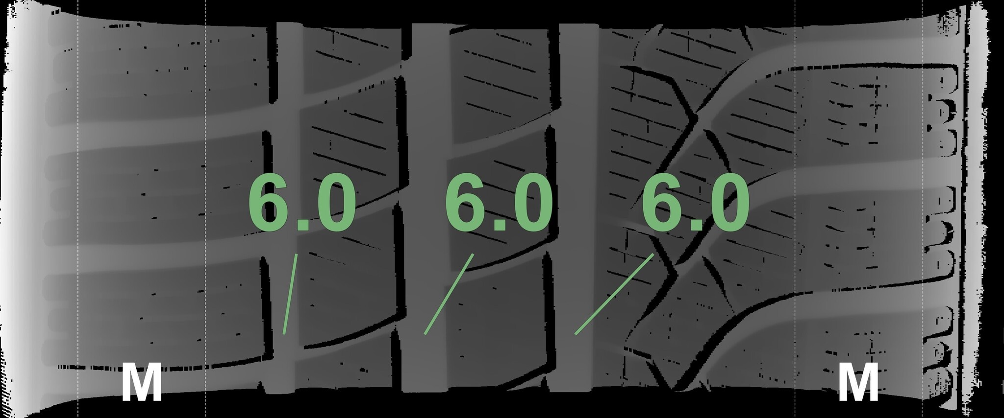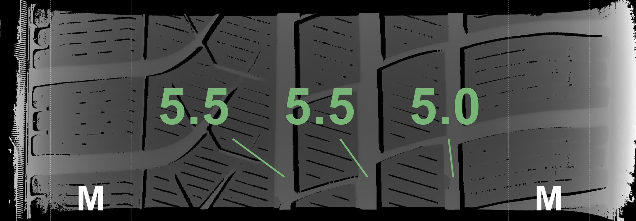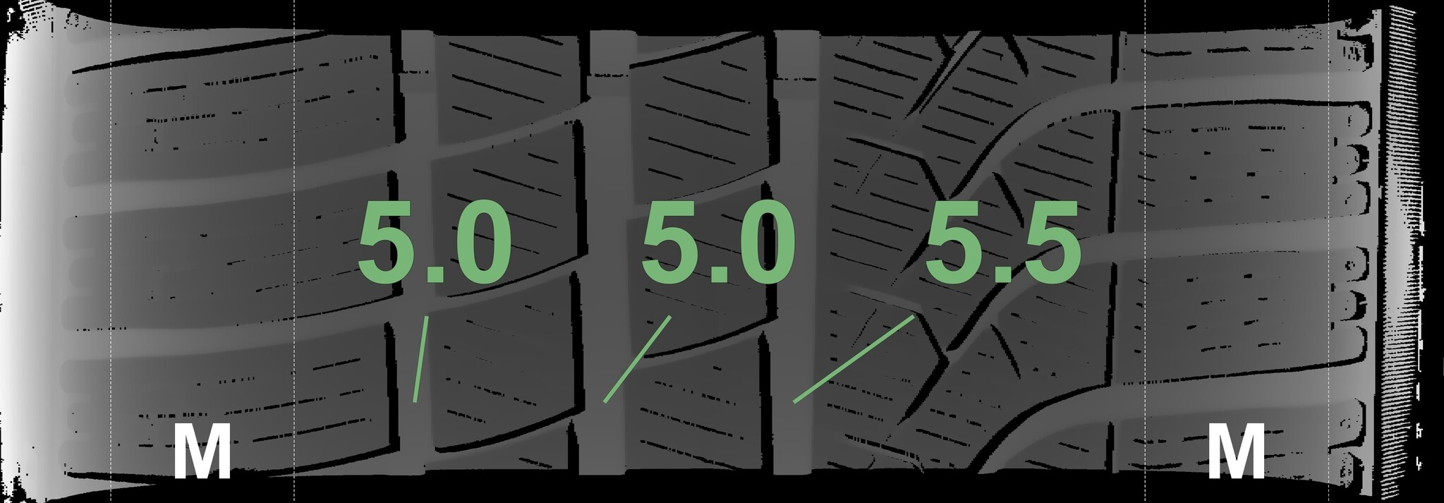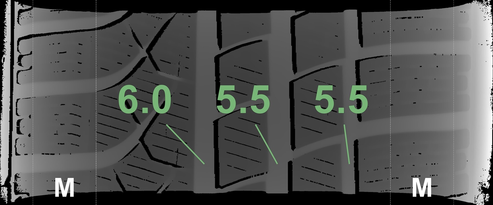 Die gemessenen Profiltiefen und die Details der Felgen sind oben angegeben.