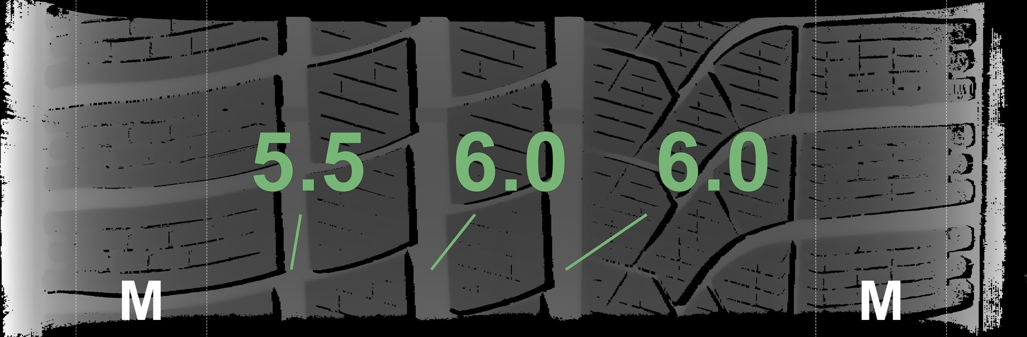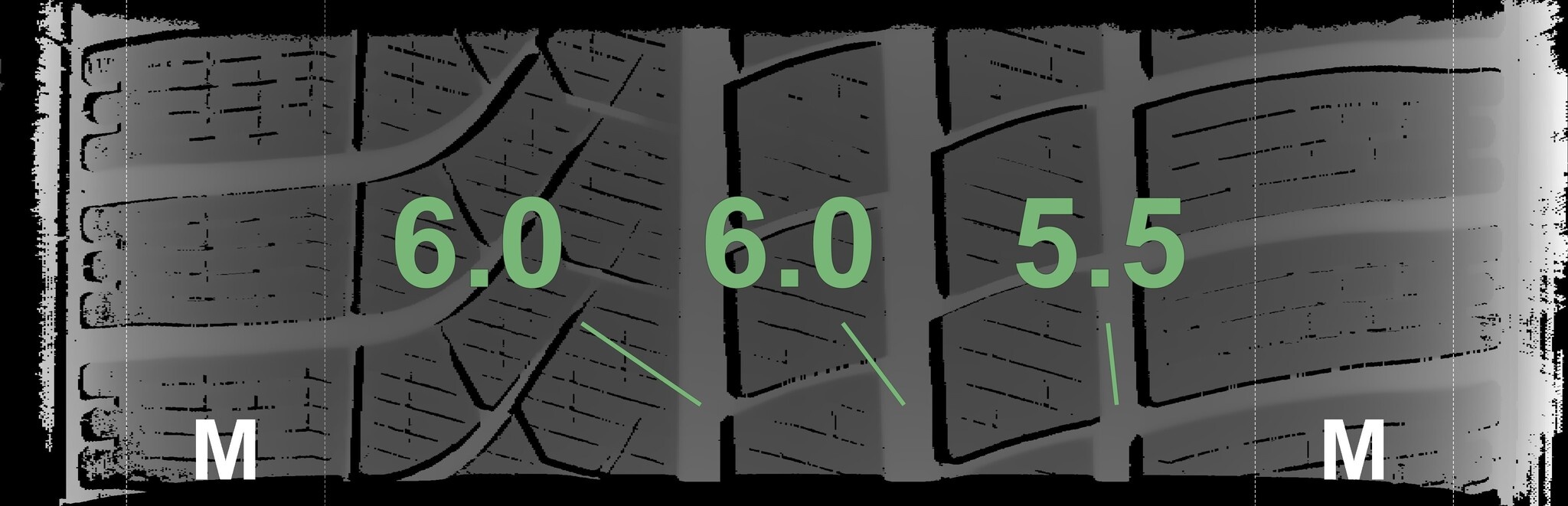 Die gemessenen Profiltiefen und Details zu den Felgen sind oben abgebildet.