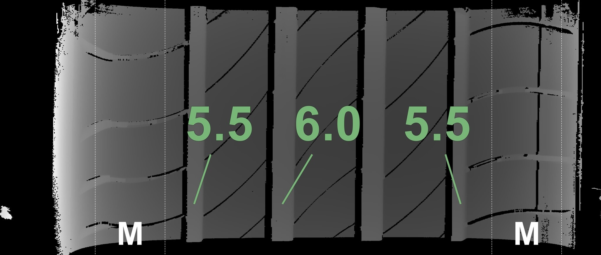 Die gemessenen Profiltiefen und die Details der Felgen sind oben aufgeführt.