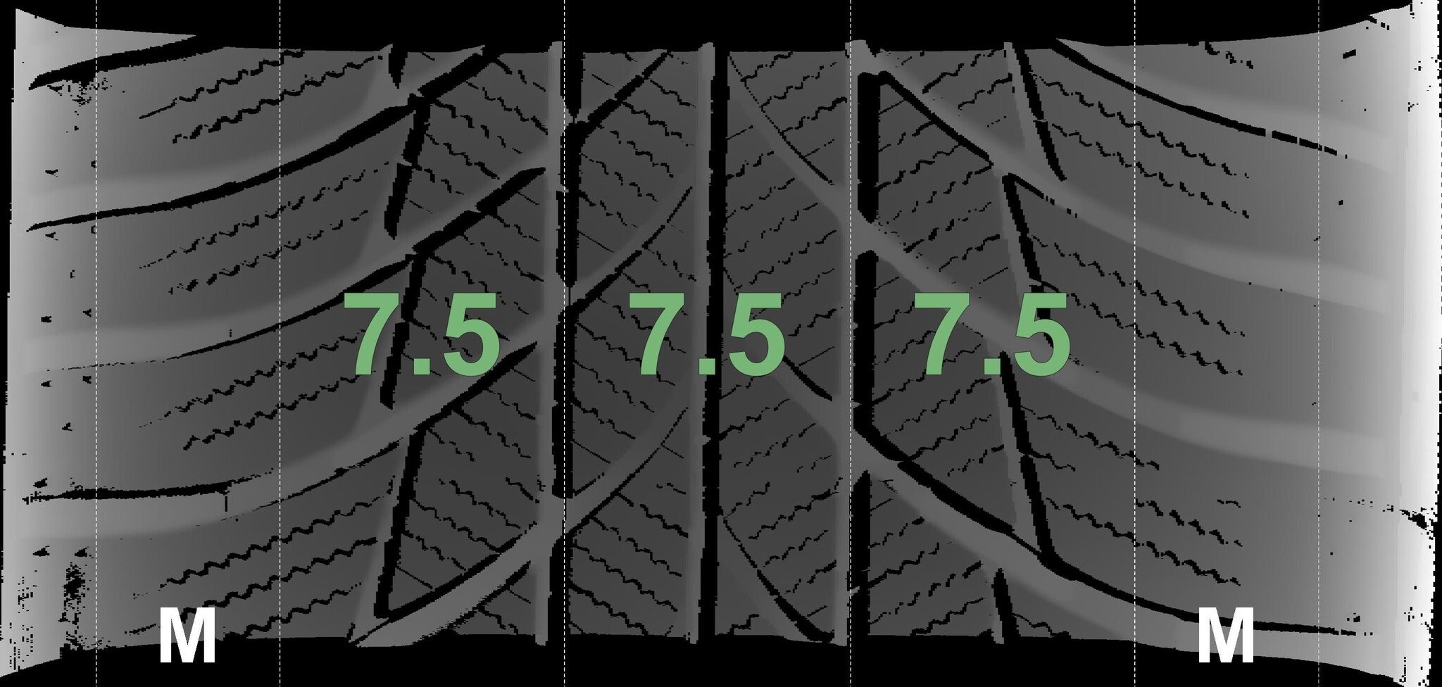 | Zustand | Profiltiefe | DOT | Hinterachse Rechts | Gebraucht | 7,5 mm | 3520 |