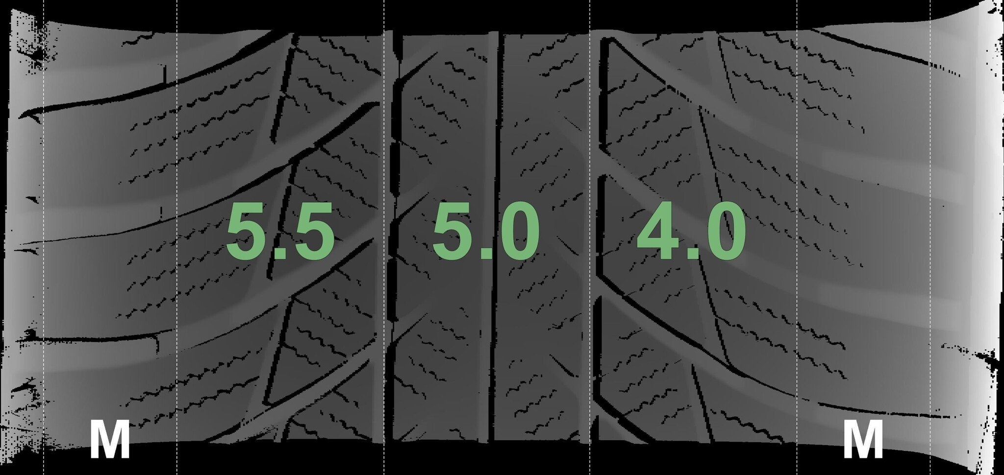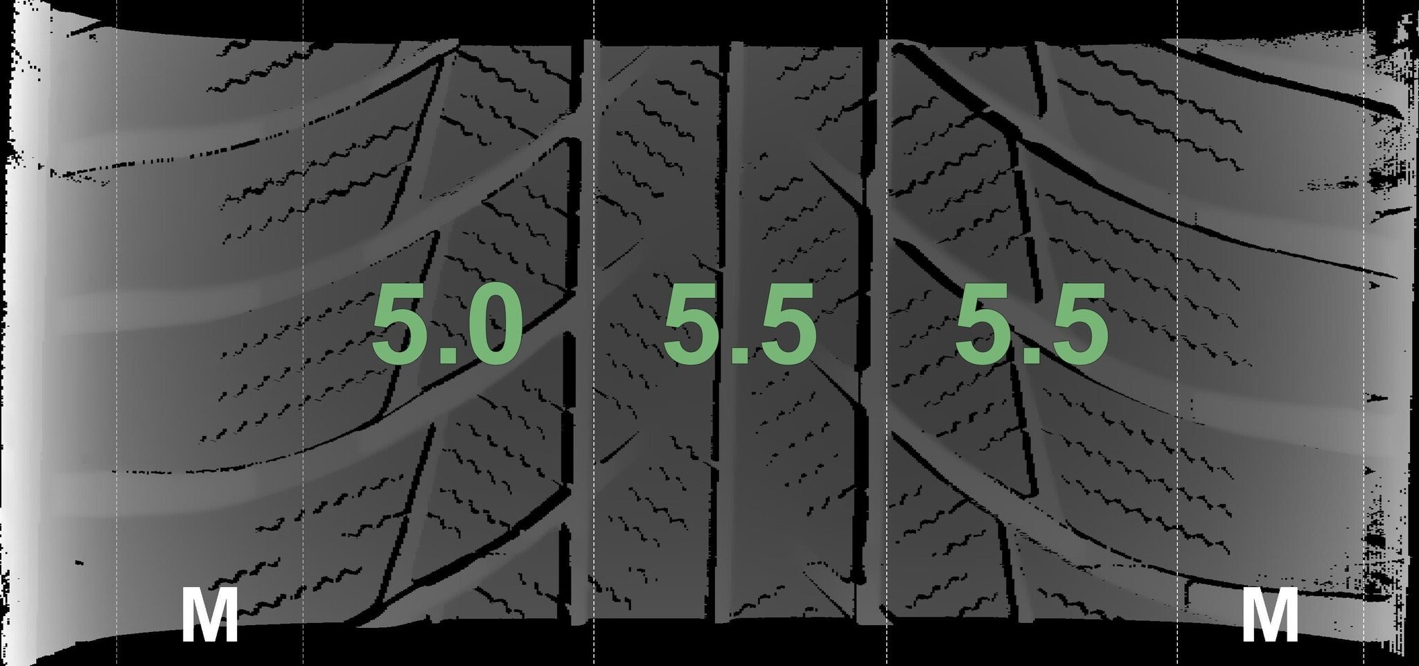 Die gemessenen Profiltiefen und die Details der Felgen sind oben angegeben.