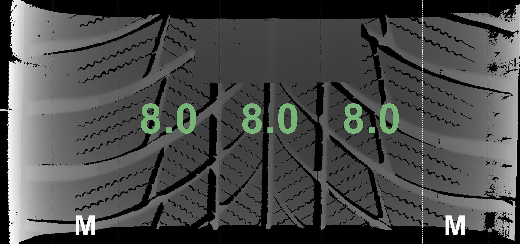 | Zustand | Profiltiefe | DOT | Vorderachse Links | Gebraucht | 8,0 mm | 3618 |