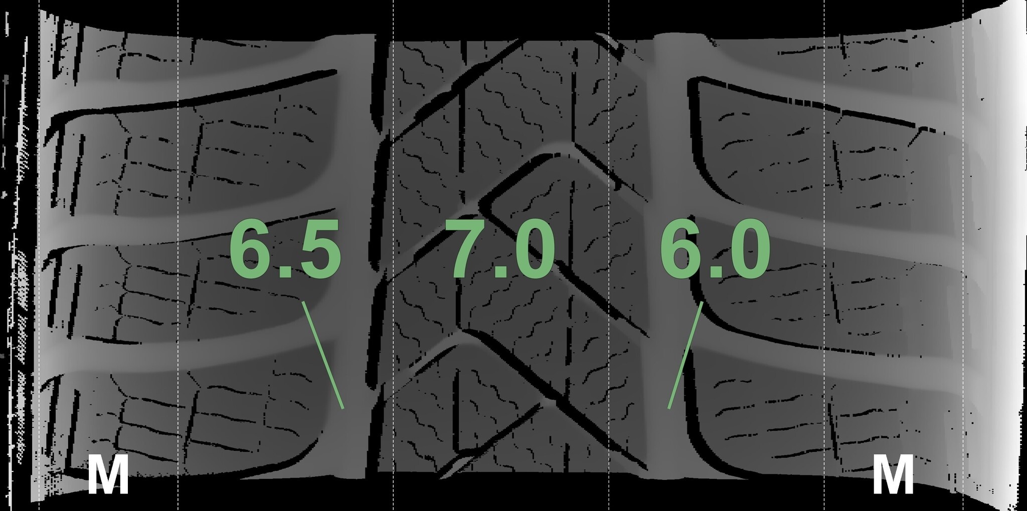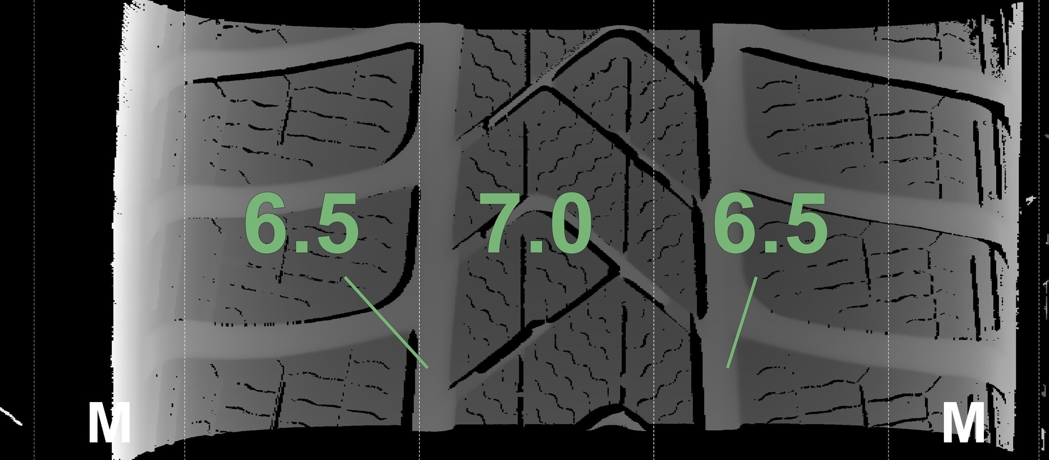 Die gemessenen Profiltiefen und Details zu den Felgen sind oben abgebildet.