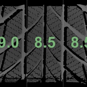 Die gemessenen Profiltiefen und die Details der Felgen sind oben dargestellt.