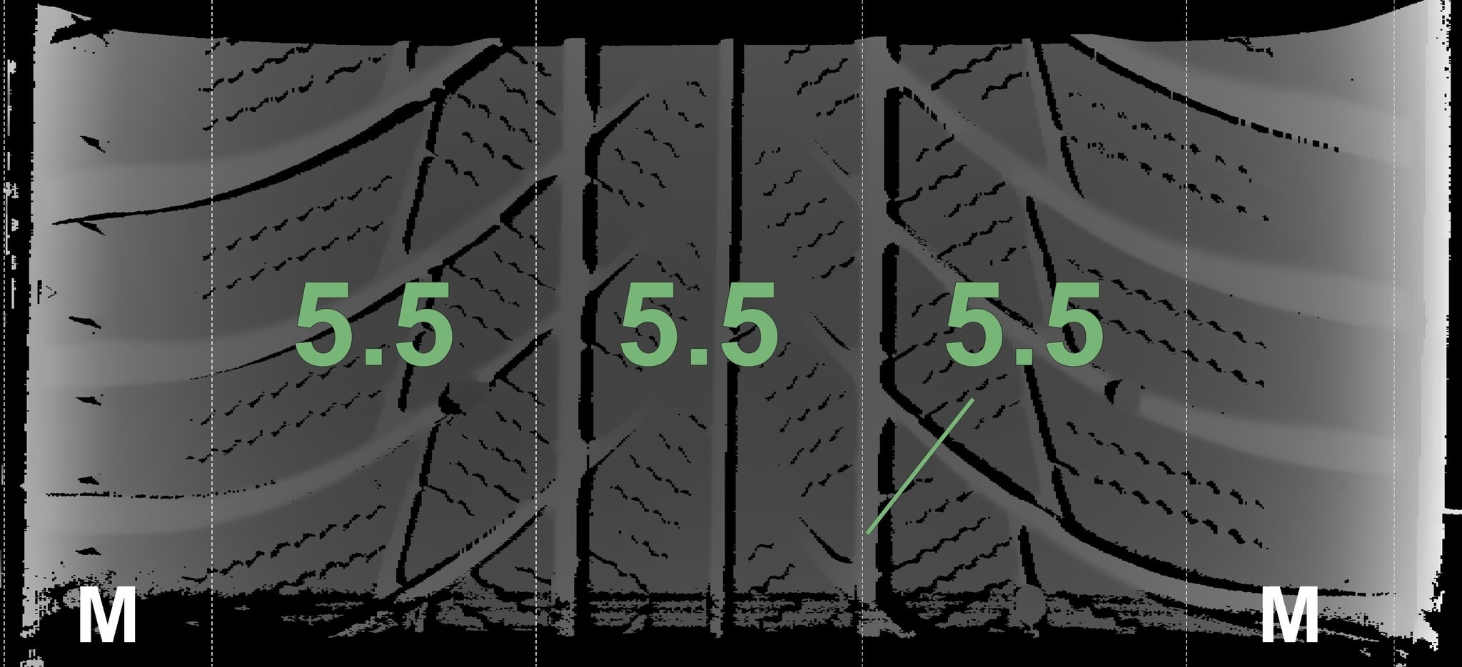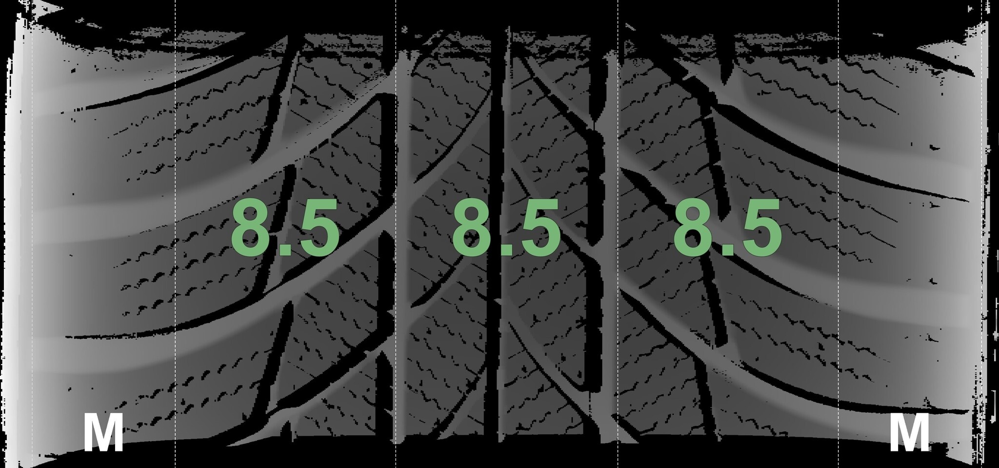 | Zustand | Profiltiefe | DOT | Hinterachse Links | Neu | 8.5 mm | 1525 |