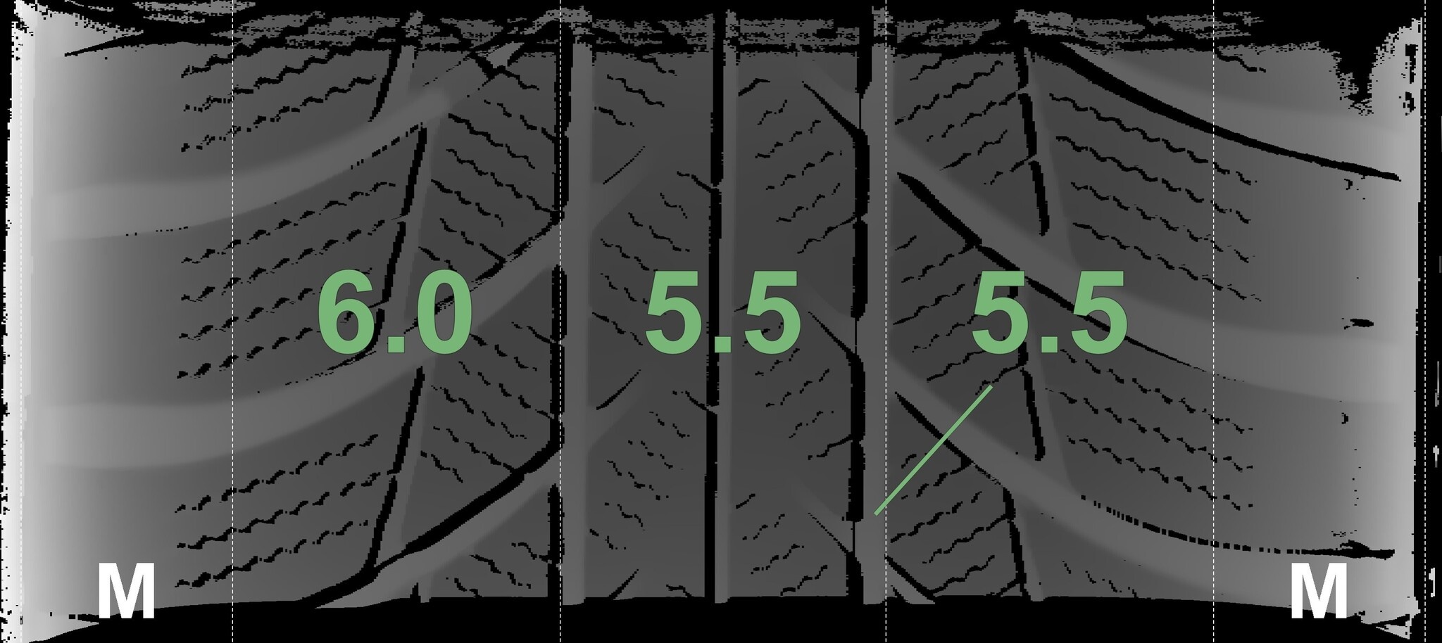 | Zustand | Profiltiefe | DOT | Hinterachse Rechts | Neu | 8.7 mm | 1525 |