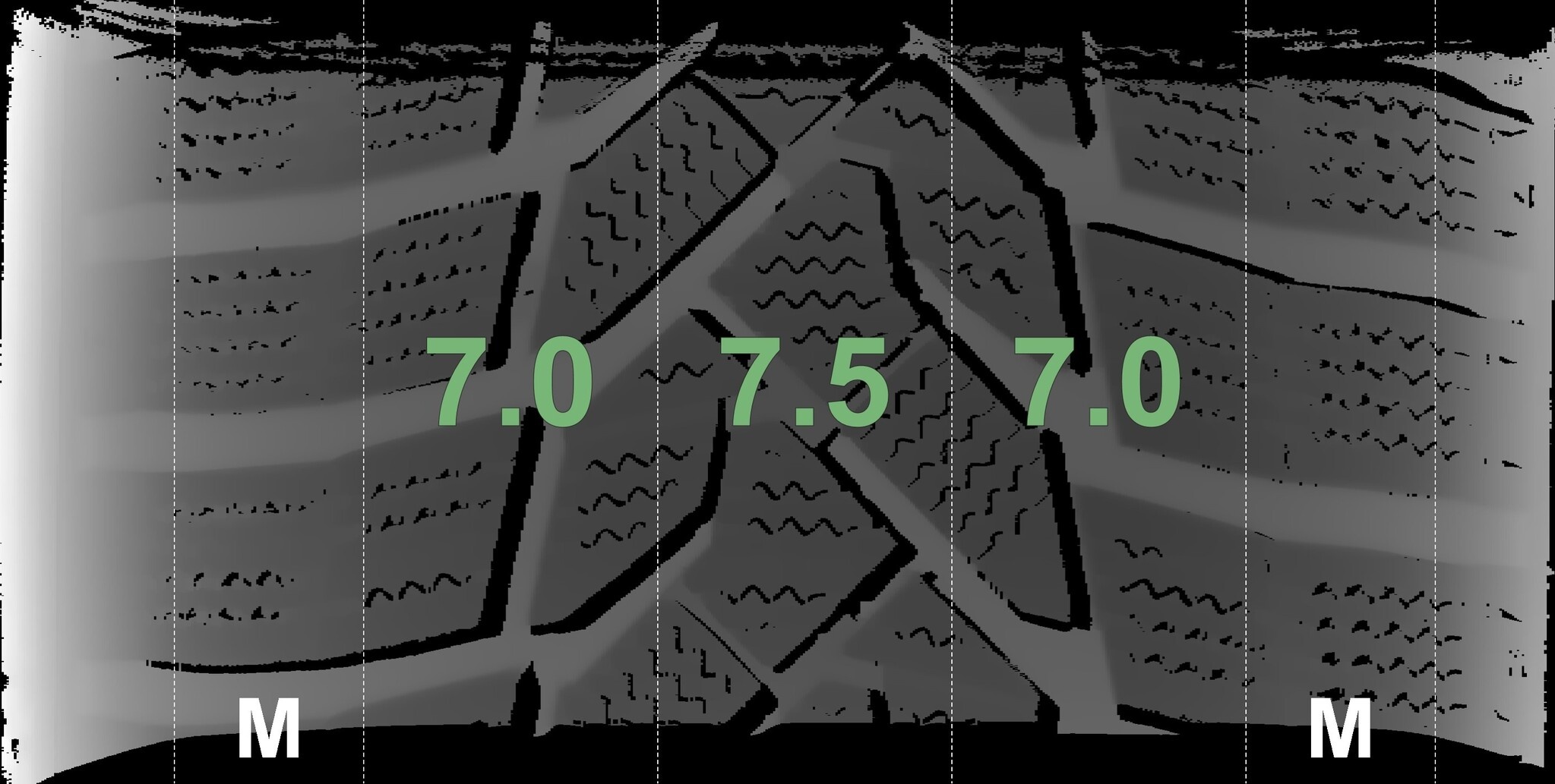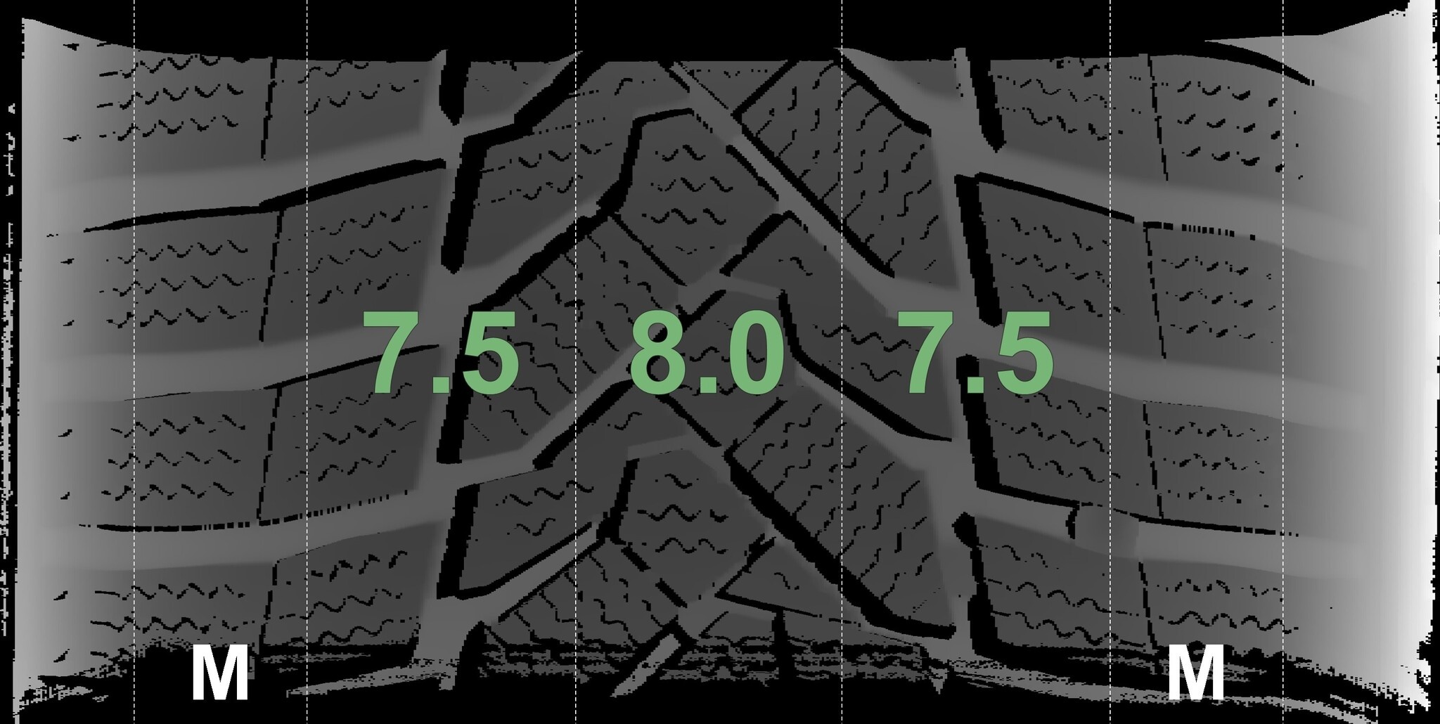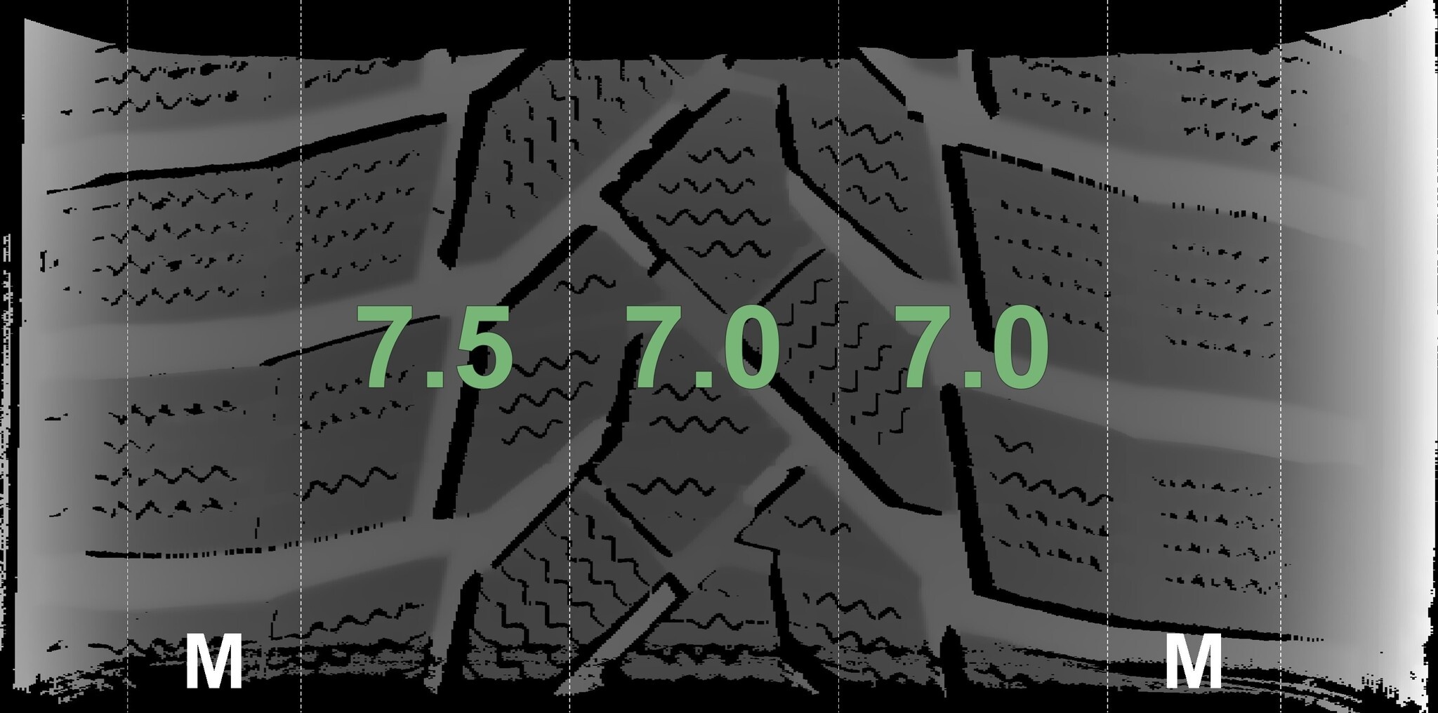 Die gemessenen Profiltiefen und die Details der Felgen sind oben dargestellt.