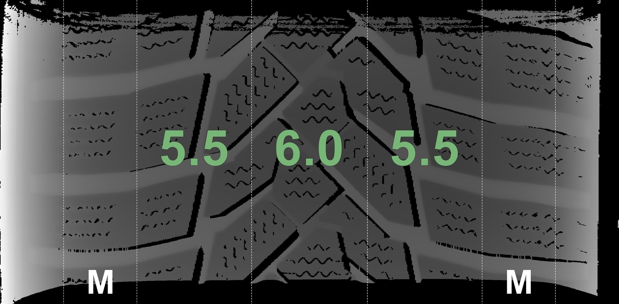 Die gemessenen Profiltiefen und die Details der Felgen sind oben aufgeführt.