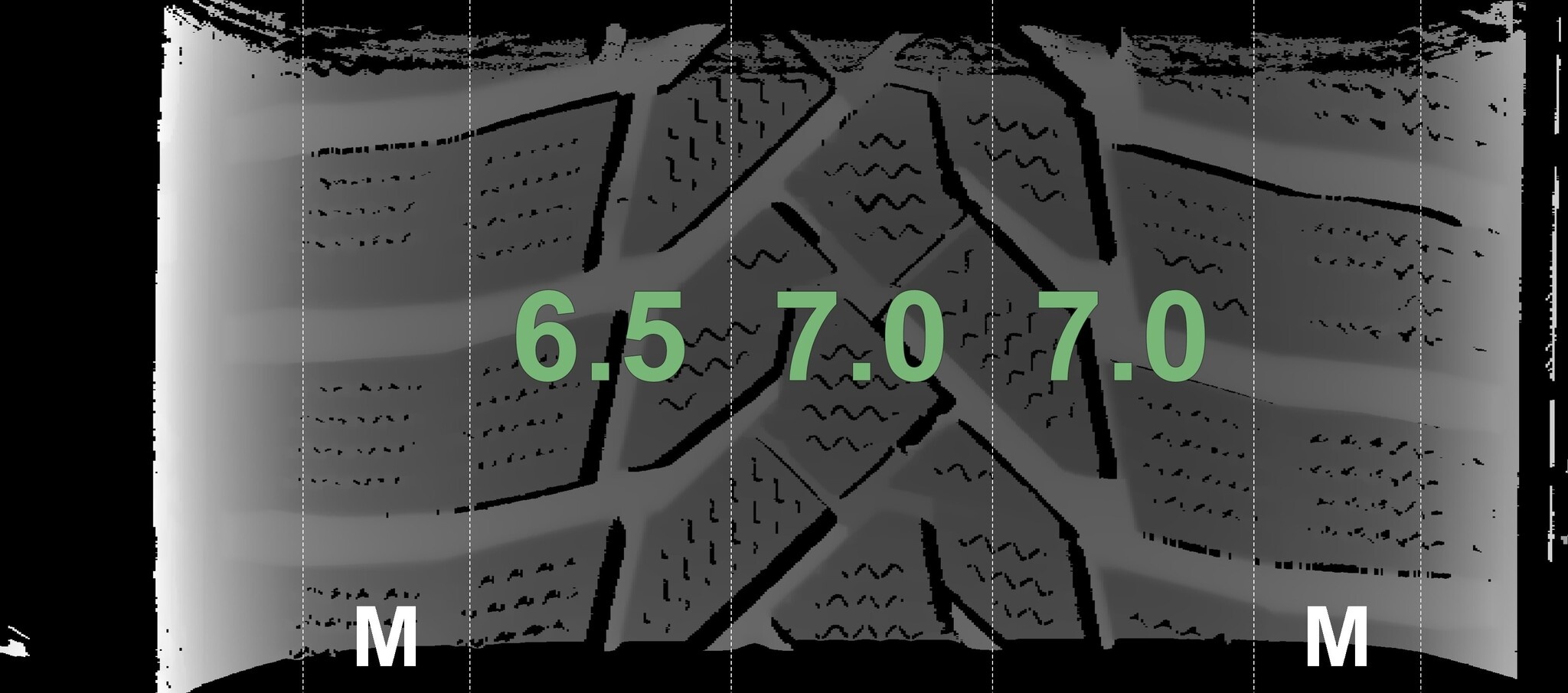 Die gemessenen Profiltiefen und die Details der Felgen sind oben dargestellt.