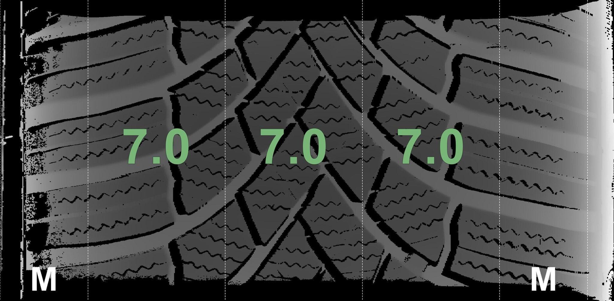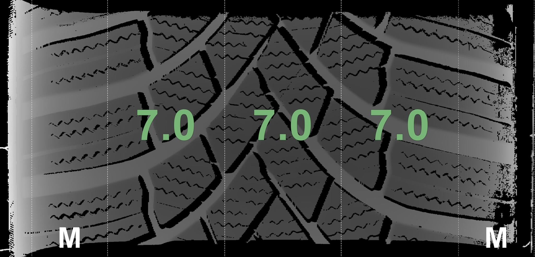 Zustand | Profiltiefe | DOT | Vorderachse Links | Demobolzen noch sichtbar | 7,0 mm | 3524 |
