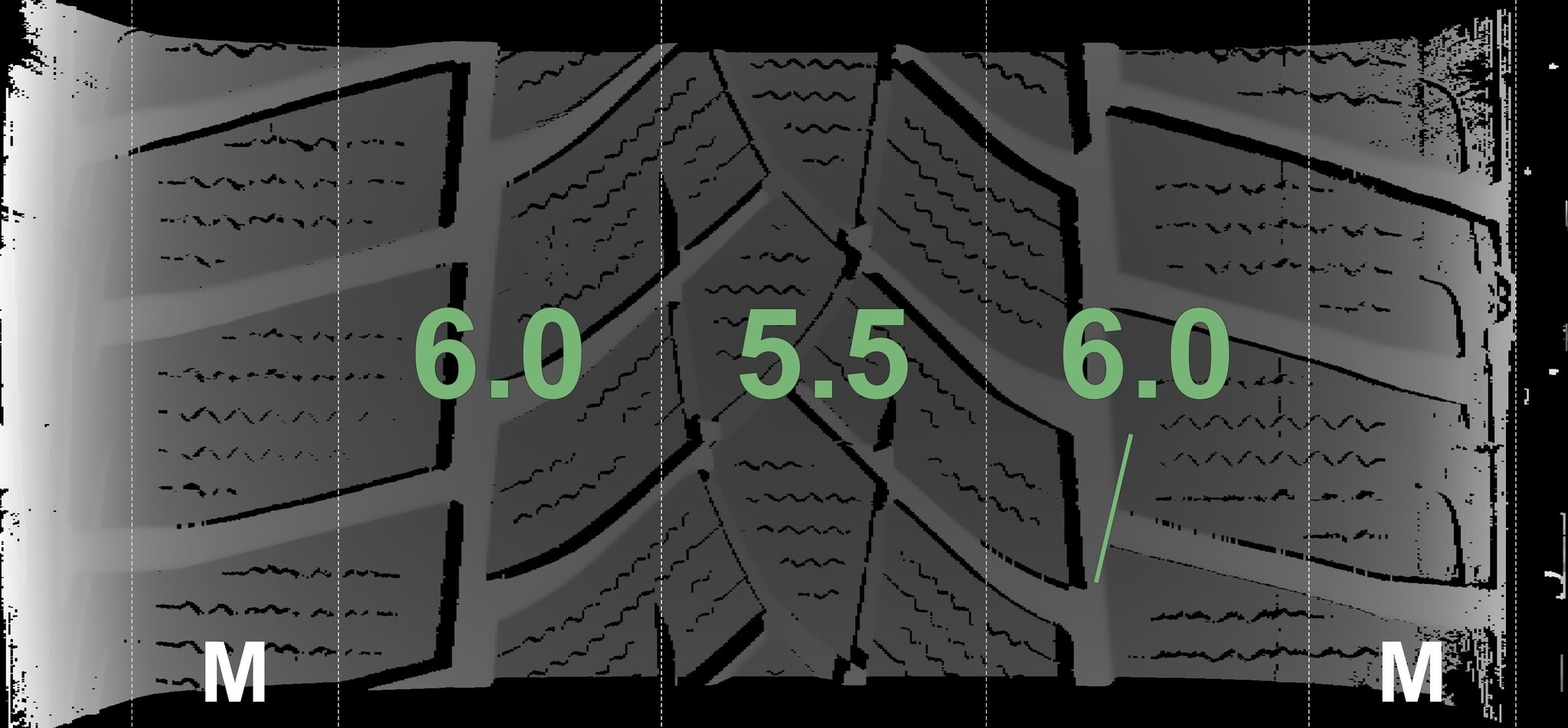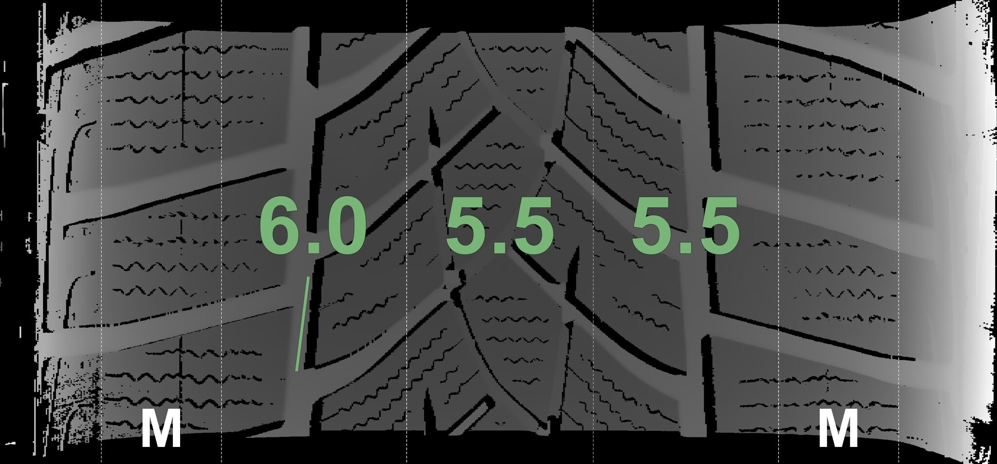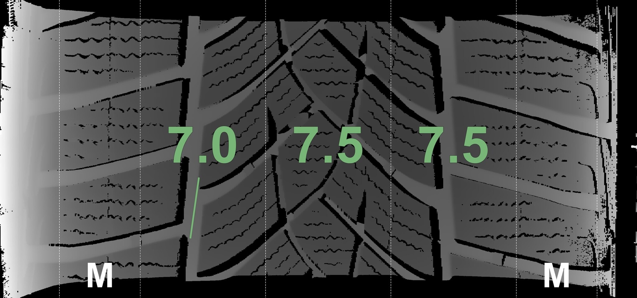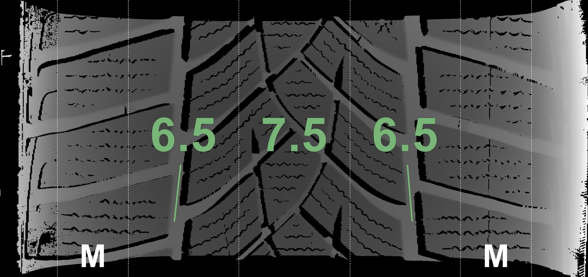 Die gemessenen Profiltiefen und Details zu den Felgen sind oben abgebildet.