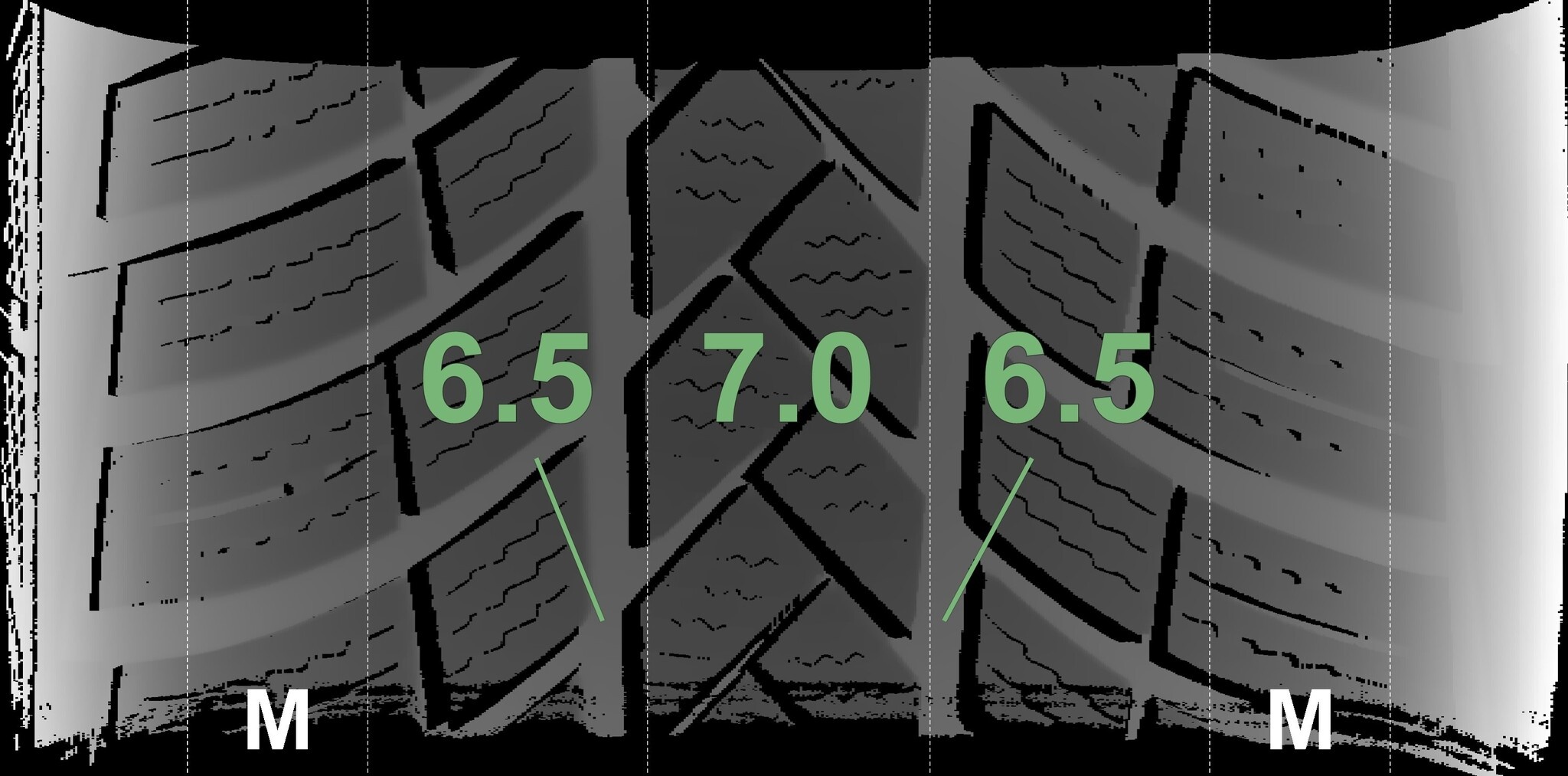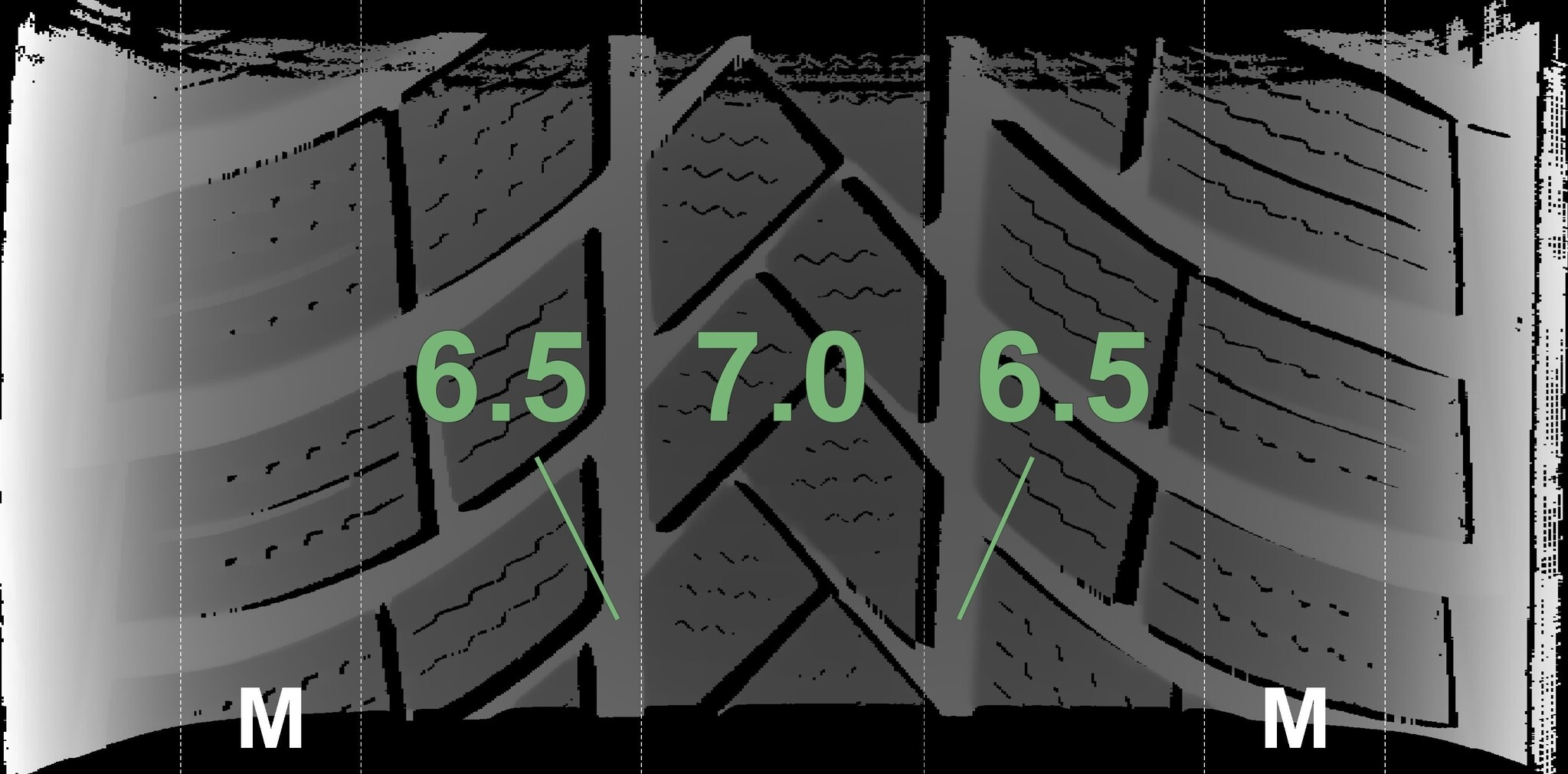 Die gemessenen Profiltiefen und die Details der Felgen sind oben dargestellt.