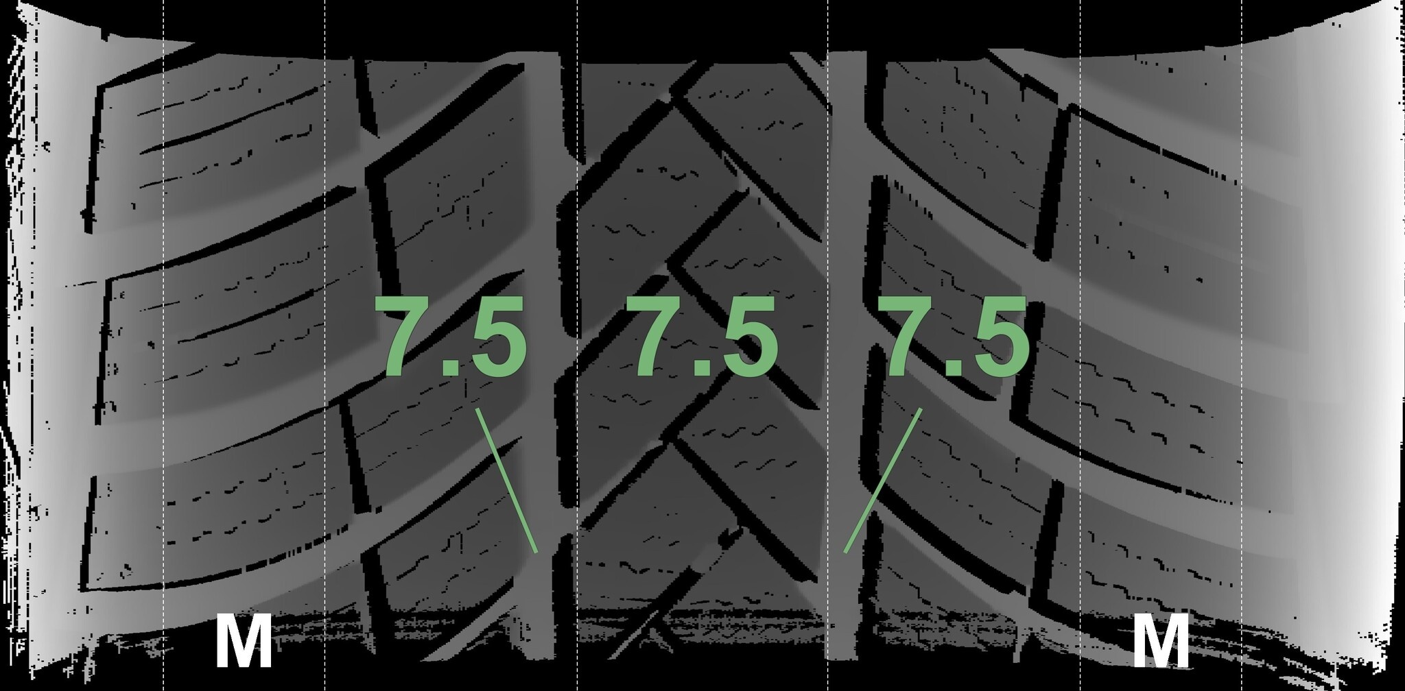 | Zustand | Profiltiefe | DOT | Vorderachse Links | Gebraucht | 7.5 mm | 4224 |