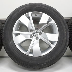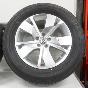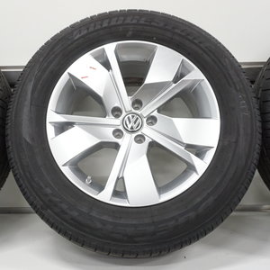 Jong gebruikte set originele Volkswagen Touareg 3 velgen 18 inch met Bridgestone Dueler H/P Sport zomerbanden. Deze velgen zijn originele velgen van het merk Volkswagen en geschikt voor de Volkswagen Touareg 3. Twee van de velgen verkeren in nieuwstaat en twee van de velgen vertonen lichte lakschade.